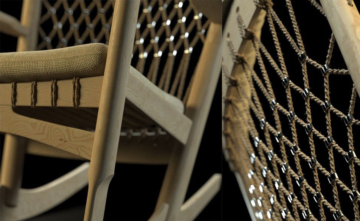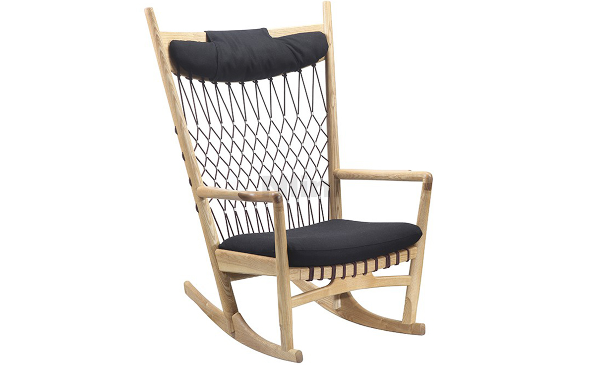 Rocking Chair(摇椅)是大师Hans J. Wegner设计的众多摇椅中的经典之作。摇椅具有简洁的线条,精准的的人体工学结构,是Hans J. Wegner在1944年为身怀六甲的妻子设计,扶手前端微微向外展开,是为让妻子方便起身。实木制成,轻便耐用,简约单纯,仍于潮流中立于不败之地,为Hans J. Wegner最受欢迎的经典作品之一。我们已经能从中感受到圈椅的影子。摇椅水曲柳制作,坐垫麻布软布(内部填充优质海绵),棉绳编织(有白色,黑色,棕红色可选)。
