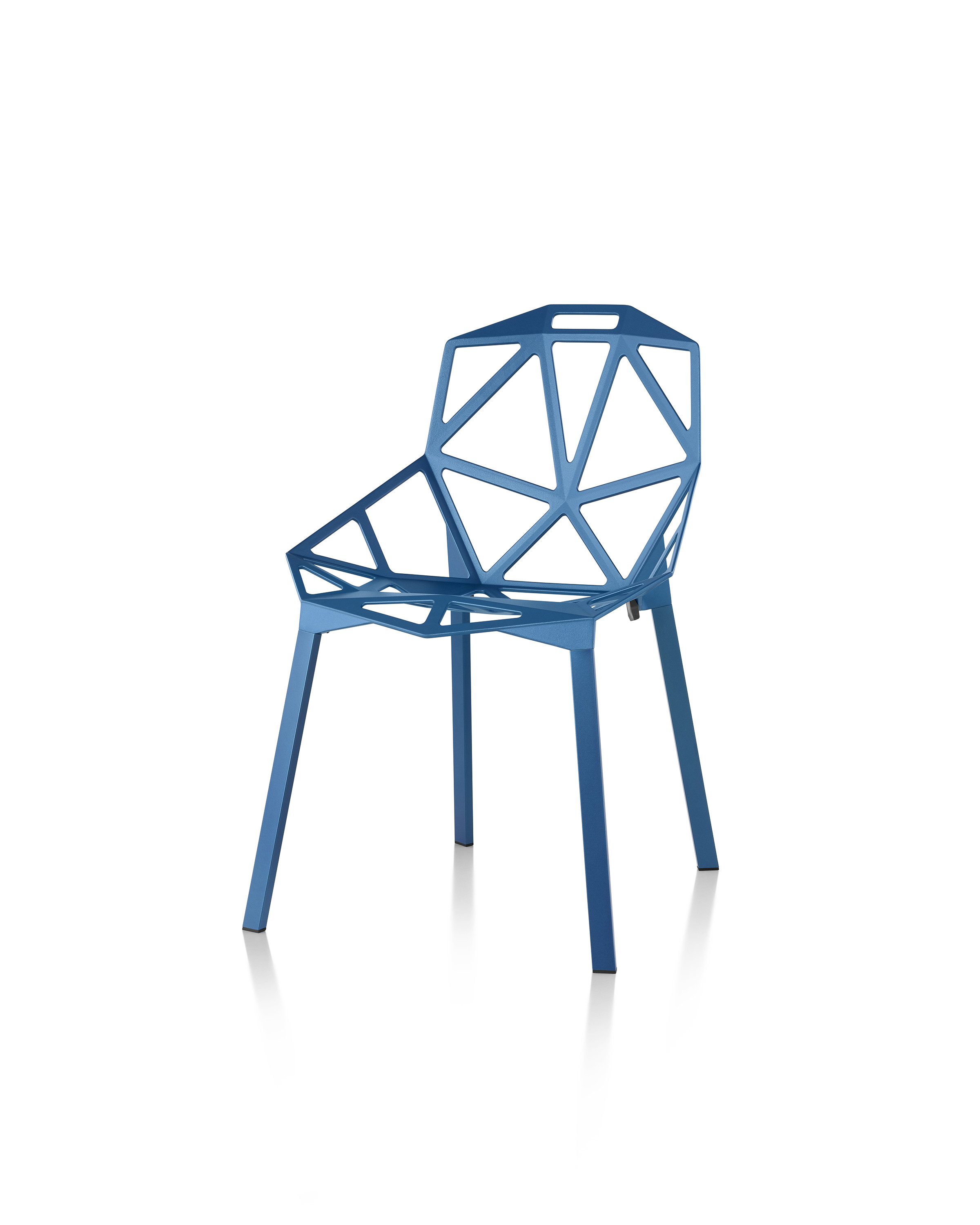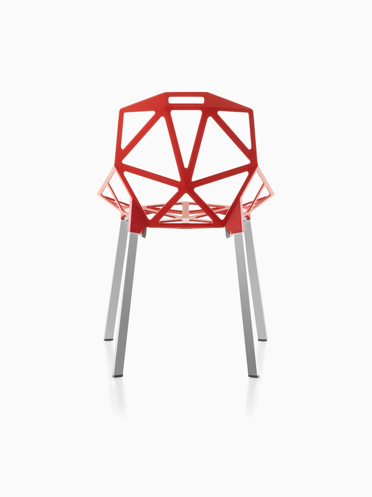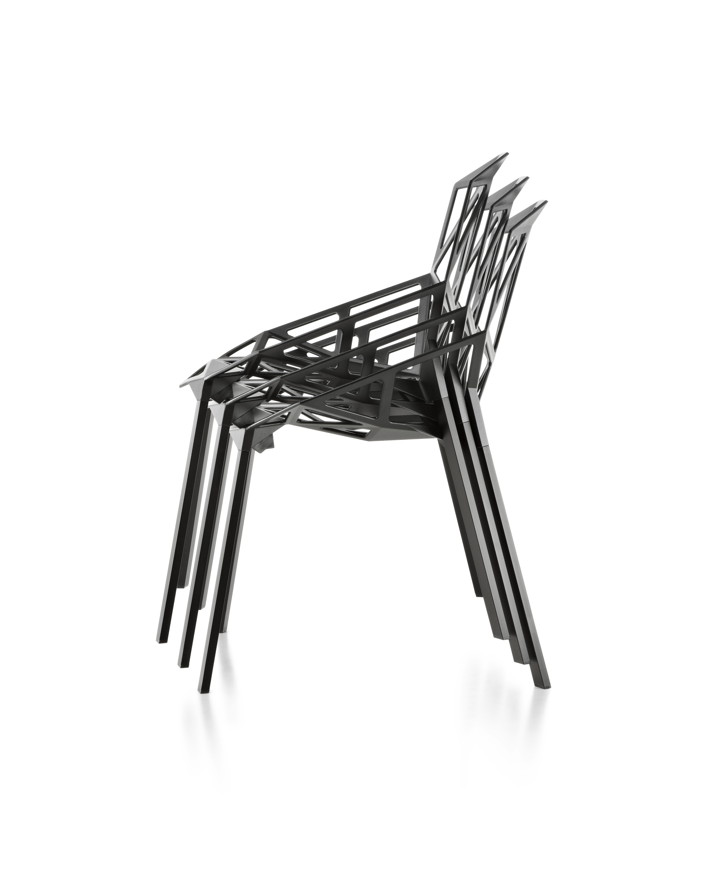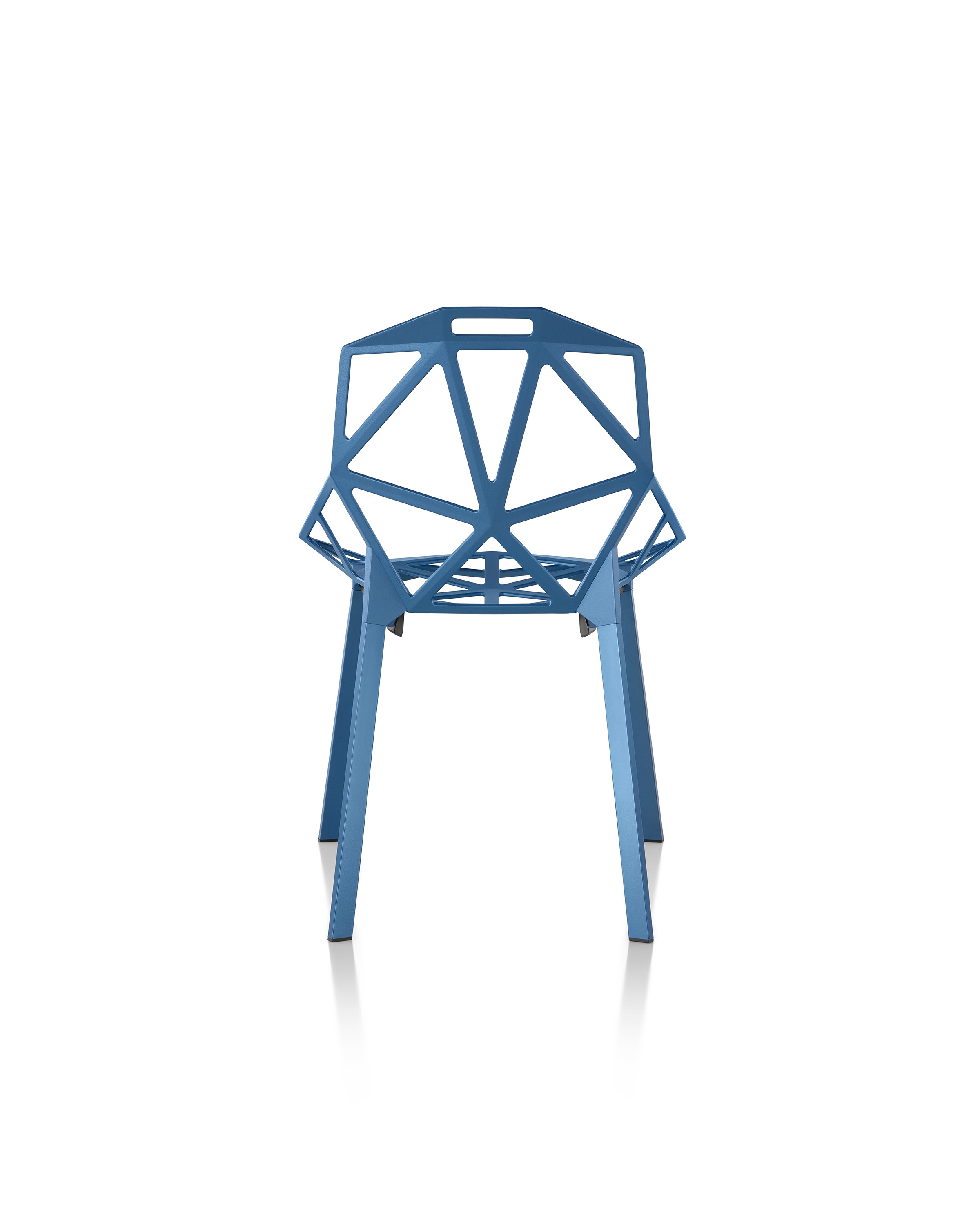 最受瞩目的德国设计师Konstantin Grcic 应邀为MAGIS 设计的Chair One(几何吧椅),是设计生涯中最具有标志的产品之一。办公椅体为模铸铝合金结构,经过氟化钛镀膜与塑料粉末涂布。椅子具有阻燃性、抗腐蚀性。适合室内及室外使用。以铝金属与钛金属制成的 Chair One,以多个平面以不同角度组合而成,建立起立体的外型。多个中空的三角型组合而成的座椅,不但令为用家带来强而有力的承托结构,而且还能在简单设计之中带出不一样的风格。这把椅子的惊人形象难免使人对它的舒适度产生疑问,但当你真正坐于其上,你会发现它实际上非常舒适,那些稀疏的网状结构能够极好地支撑不同体型的人体,后背上的把手也非常实用。当你知道Chair-One最初是被当作户外用椅而设计的,你会更加佩服Konstantin Grcic的缜密用心:极少的表面可以杜绝雨水,并且减少灰尘堆积,夸张的形态则令它能够在街道、建筑或自然的环境中拥有自己美学上的存在,而不是被环境所吞没。Konstantin Grcic花了三年时间设计Chair One,自2003年诞生以来,堪称Grcic精简主义风格的代表作。2006年,Chiar One为Konstantin Grcic赢得了德国政府的设计大奖。