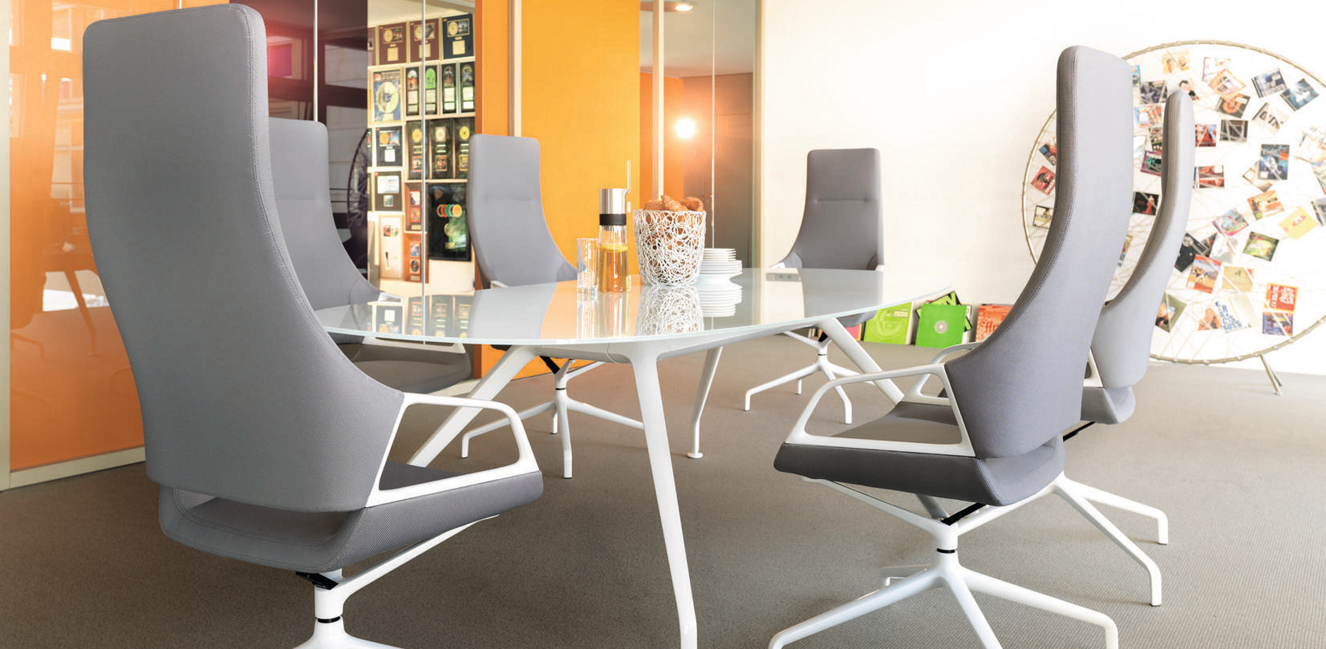 他的Graph反映了图表会议椅的主要设计特点。椅子的足部、扶手都可以在Graph会议桌上无缝反映出来。在桌子的框架上,铝的框架与倾斜的压铸铝腿和它们弯曲和扁平的外观相呼应。因此,在工作台框架上,灯线始终如一地出现,从而使框架具有无缝外观。巨大的跨度也给人留下了一种优雅的印象,引力似乎在那里几乎停滞了。这个ef fect是由不对称曲线的表边和表的圆角来增强的。