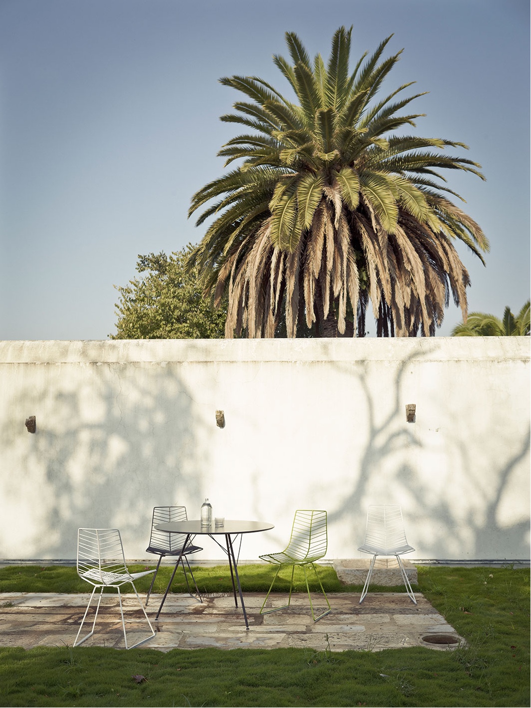 基座有三脚或四脚。全部采用白色,摩卡或绿色涂漆钢材制成。防水HPL上衣有灰色可供选择。