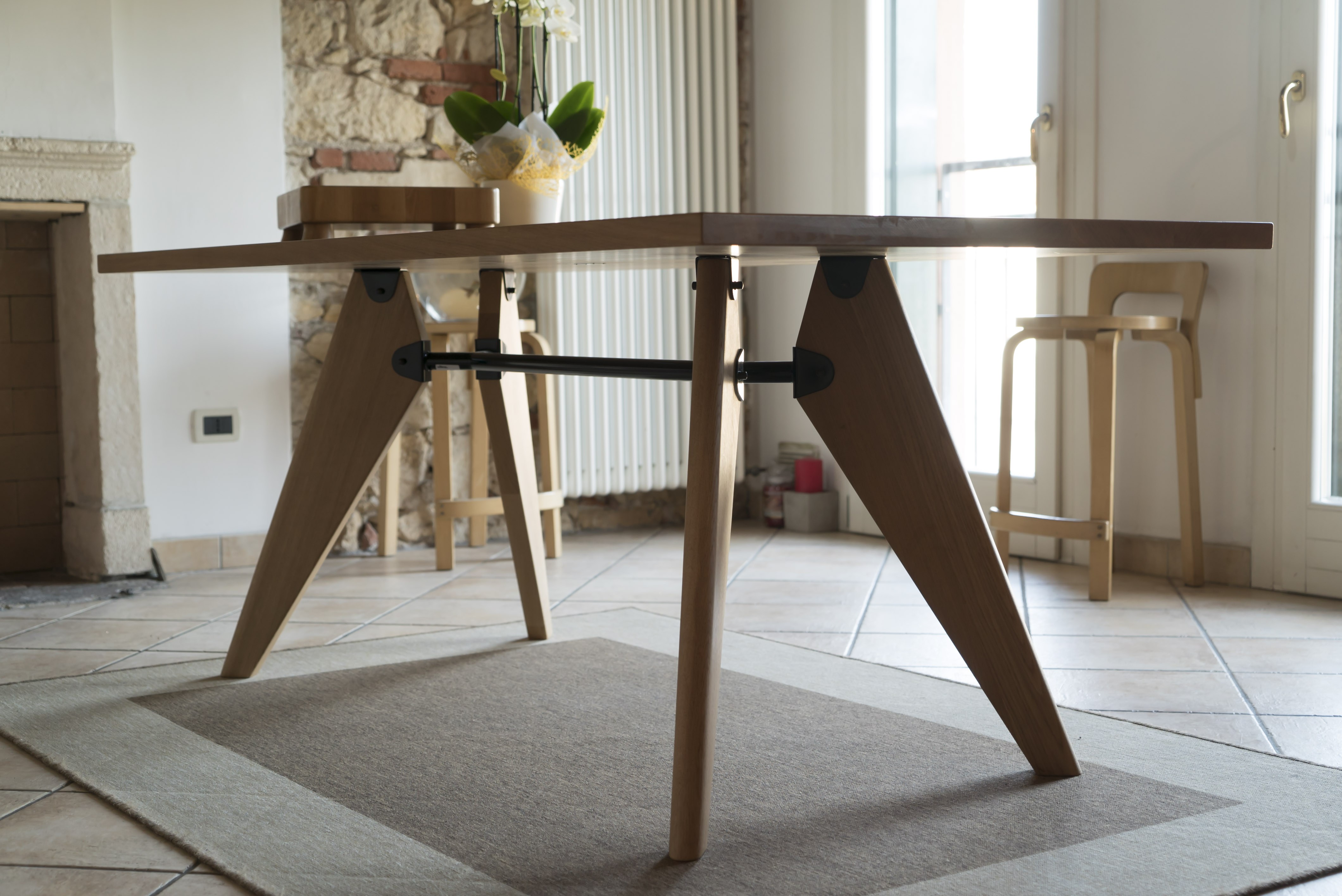 JeanProuve在第二次世界大战期间开发了Table Solvay,由于当时金属稀缺,他设计了优雅的木腿腿。 天然橡木,深色烟熏橡木或美国胡桃木的实木组件为桌子带来轻松和精致的感觉。