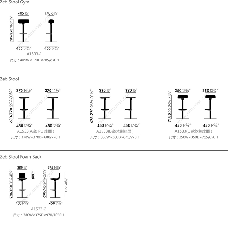 Zeb Stool Gym 系列尺寸/示意图