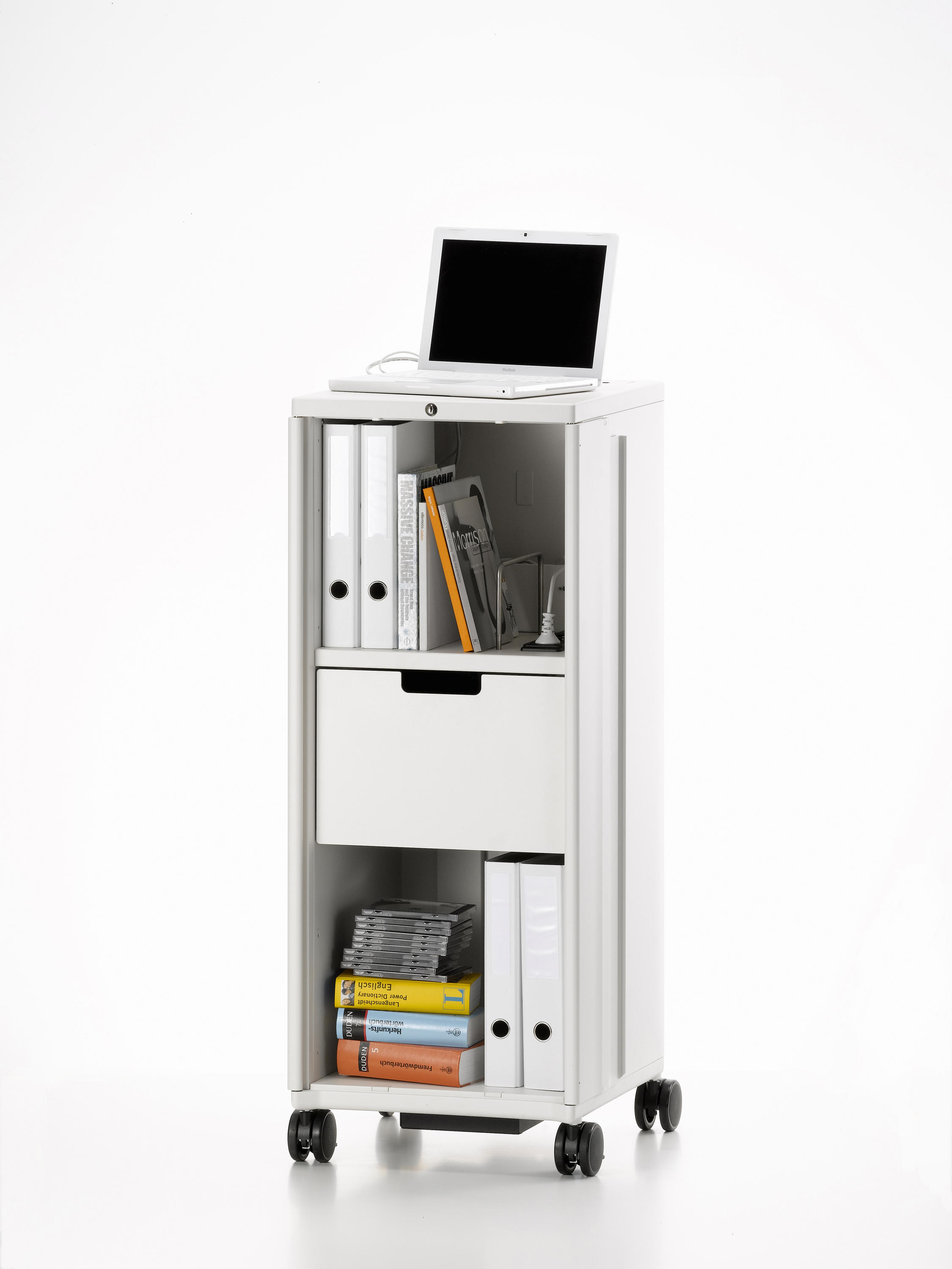 飞机手推车激发了建筑师和设计师Christoph Ingenhoven的灵感,开发出带Vitra的移动存储家具Caddy。 由粉末涂层钢板制成,Caddy坚固耐用,其各种家具选择使其成为办公室的实用伴侣:它还可以配置为复杂的电气化站立工作场所,作为演示投影仪的基础或作为餐饮用途的帮手。