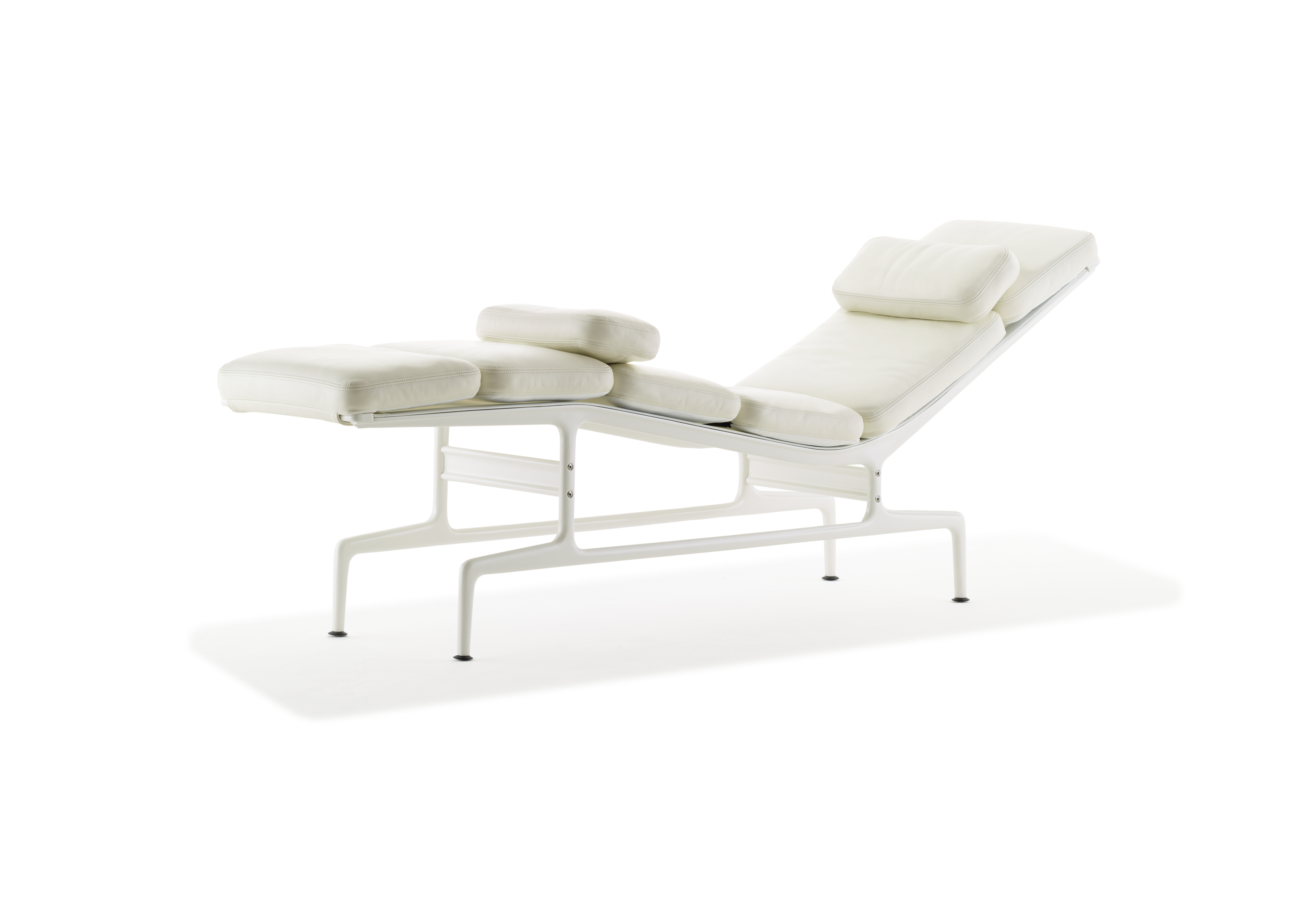 这款躺椅有着整洁的线条和如雕塑般的框架与底座,可谓一件艺术品。这款躺椅有三种颜色组合:茄紫色框架搭配黑色皮革和织物吊带;黑色框架搭配黑色皮革和织物吊带;白色框架搭配珍珠色皮革和白色织物吊带。