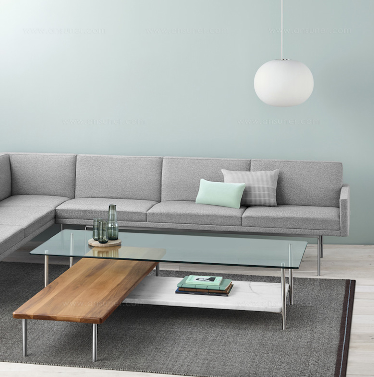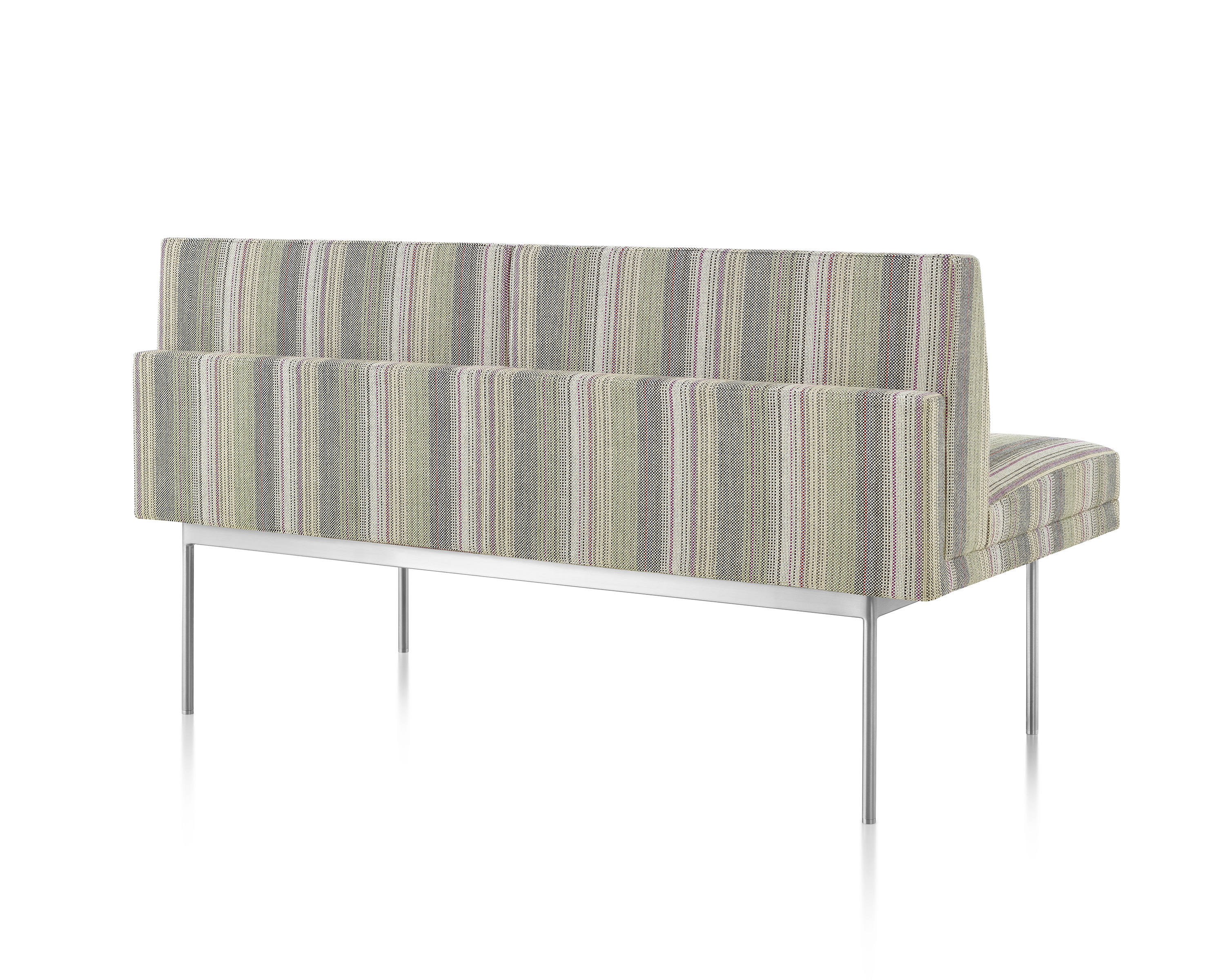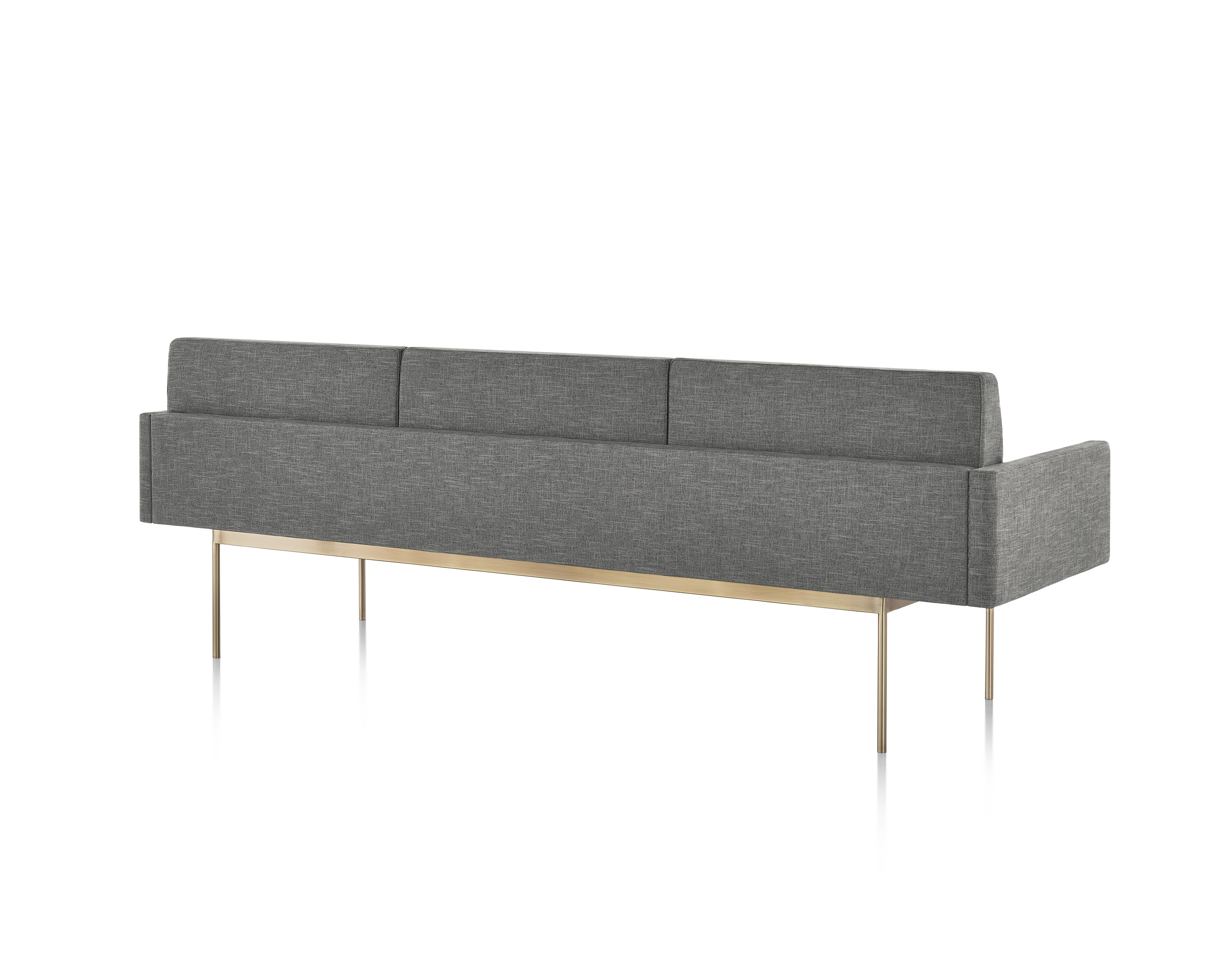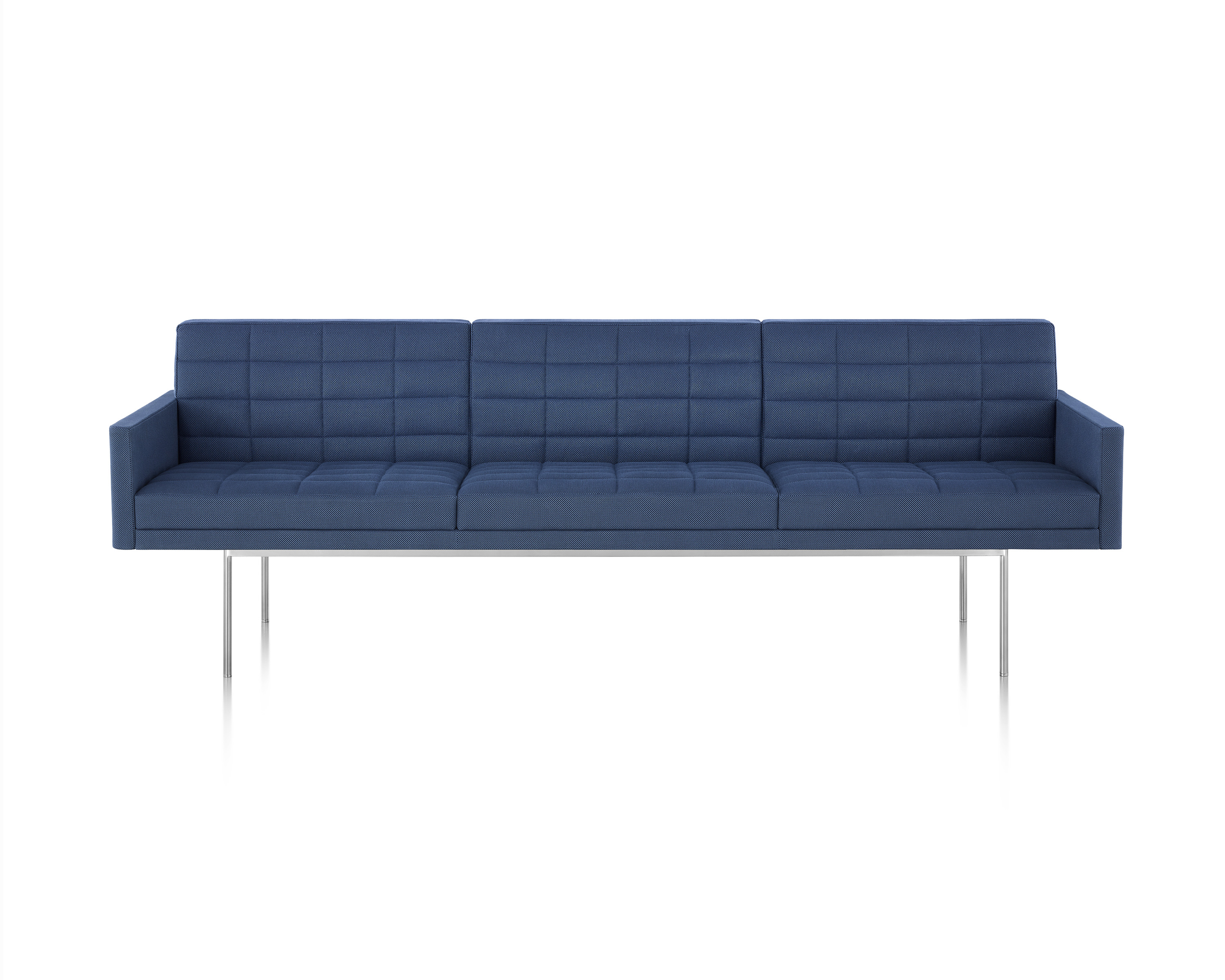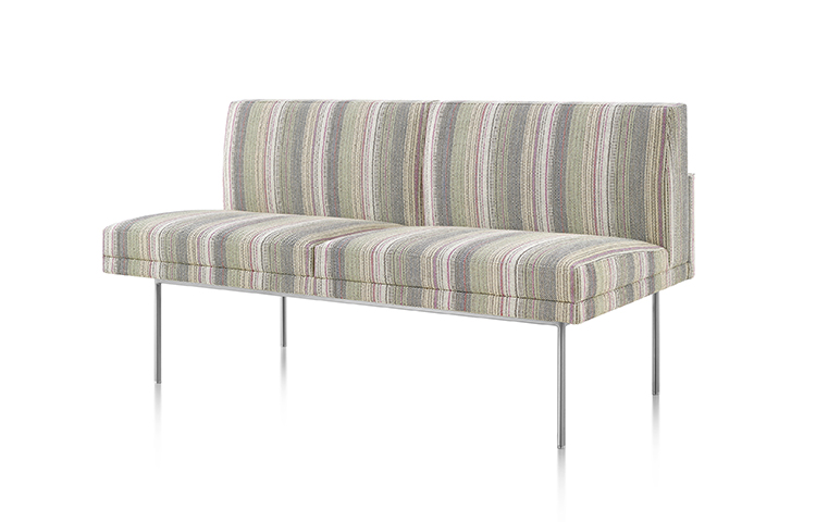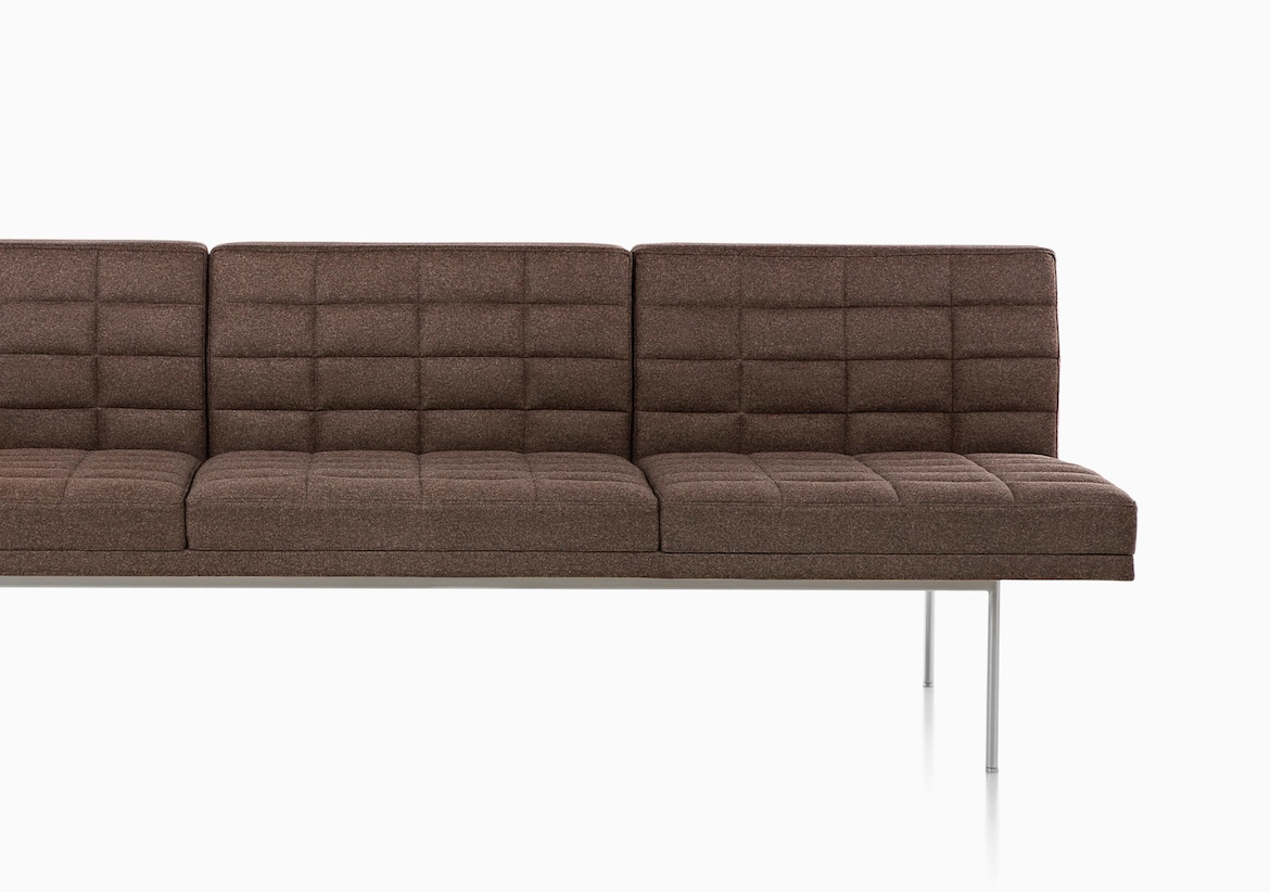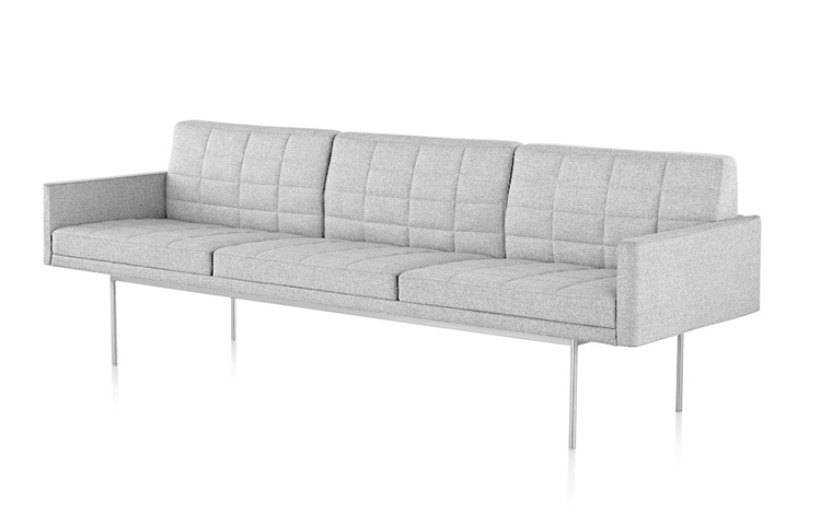 Tuxedo沙发悬挂在狭窄的钢腿上,有多种金属饰面可供选择,由于背部和(可选)臂形成的水平带,Tuxedo Sofa的轮廓低而光滑。精心设计的室内装潢覆盖了纤薄的双密度泡沫垫,进一步增强了设计的轻巧外观。每件都有各种各样的室内装潢,有或没有绗缝。