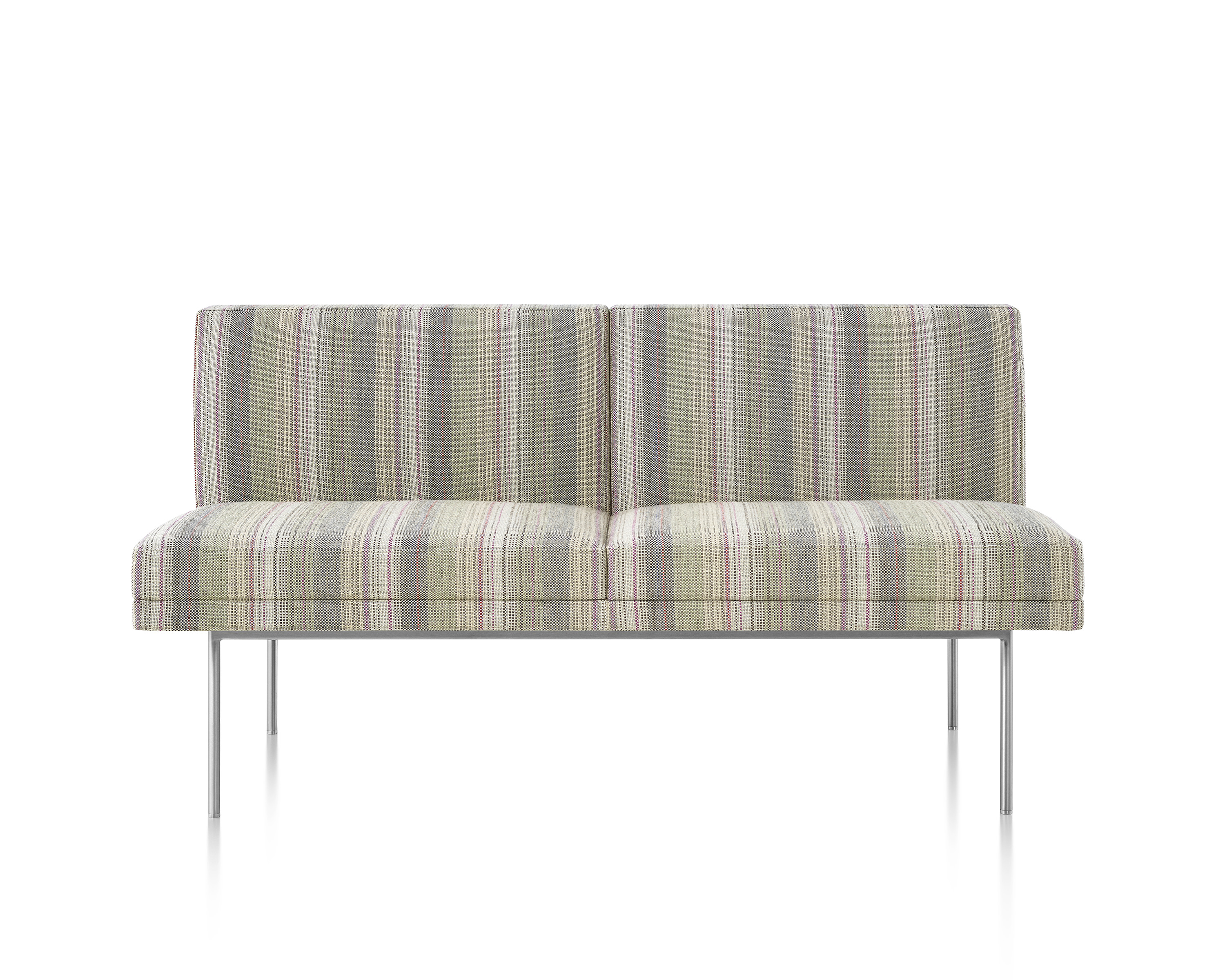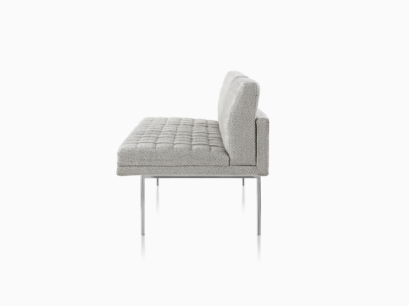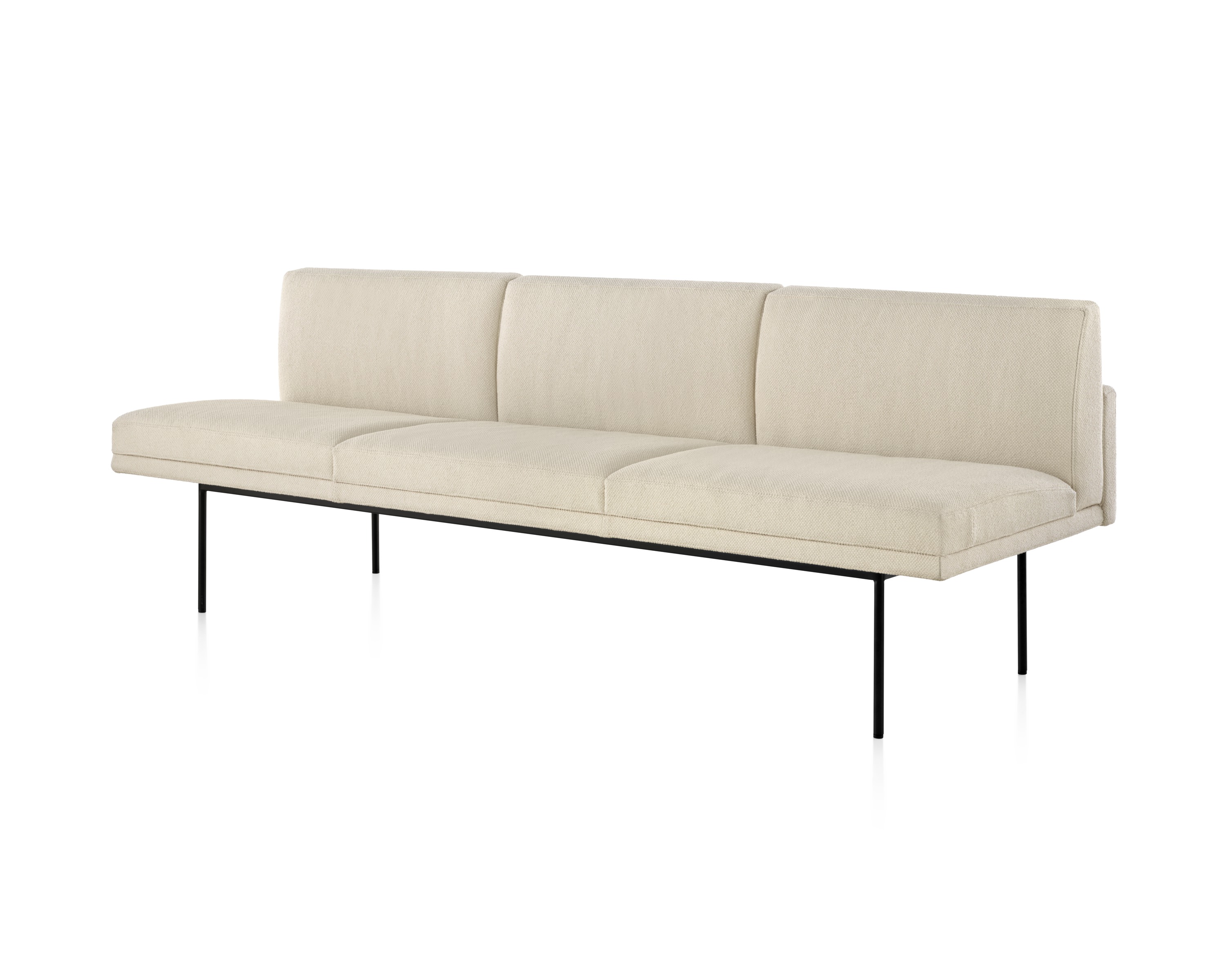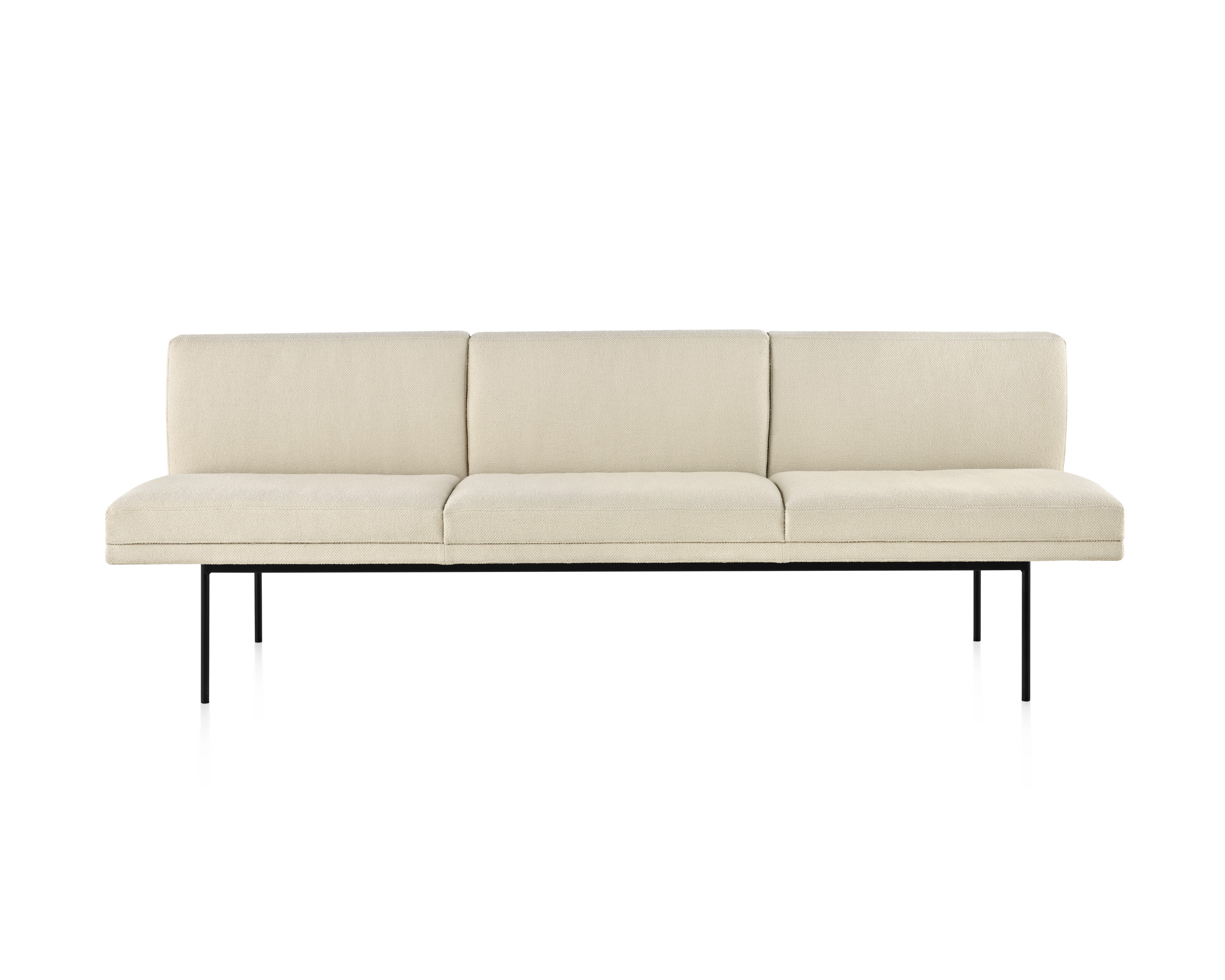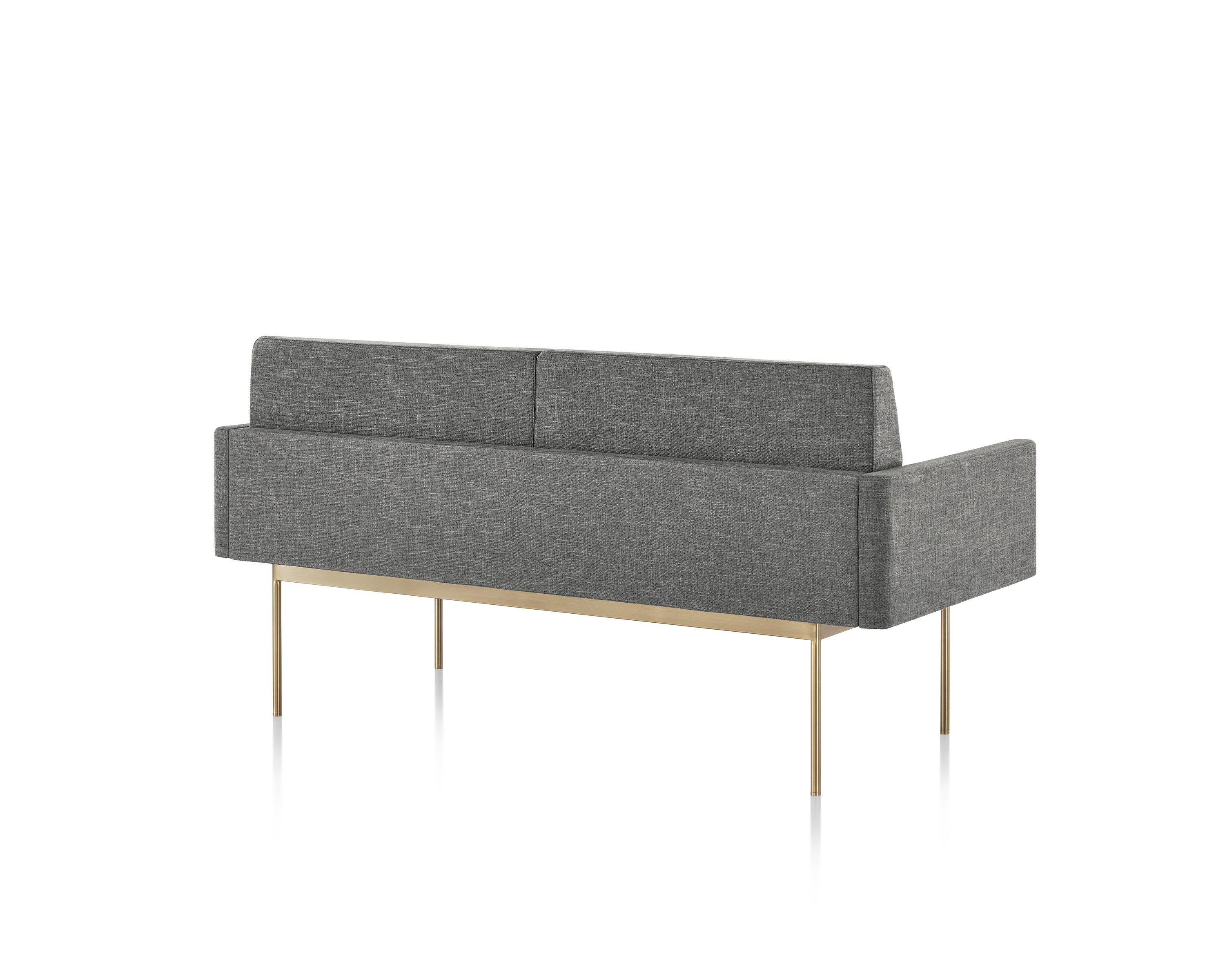 Tuxedo沙发悬挂在狭窄的钢腿上,有多种金属饰面可供选择,由于背部和(可选)臂形成的水平带,Tuxedo Sofa的轮廓低而光滑。精心设计的室内装潢覆盖了纤薄的双密度泡沫垫,进一步增强了设计的轻巧外观。每件都有各种各样的室内装潢,有或没有绗缝。