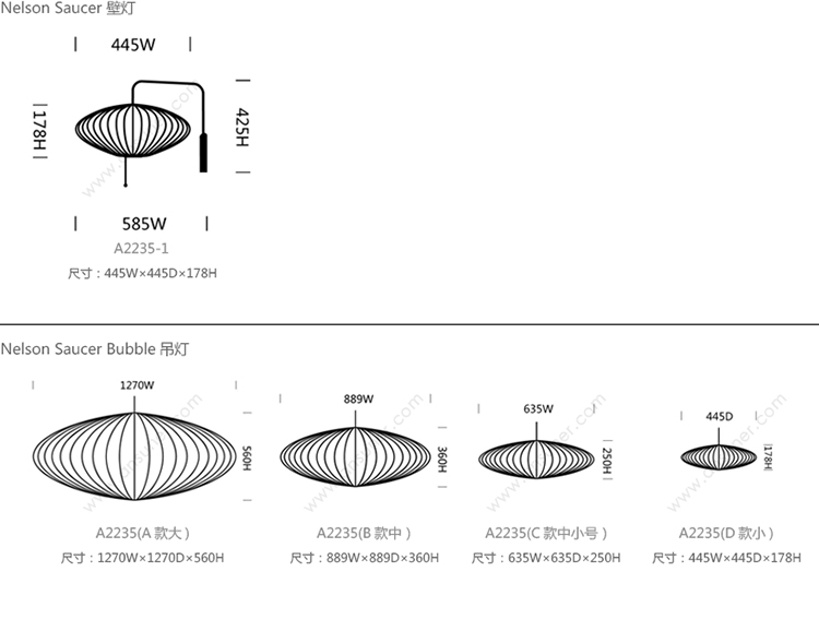 Nelson Saucer 系列尺寸/示意图