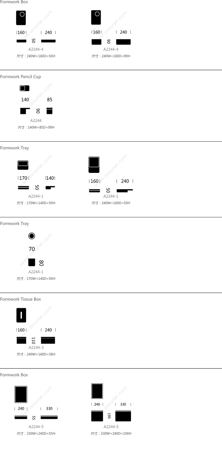 Formwork Box 系列尺寸/示意图