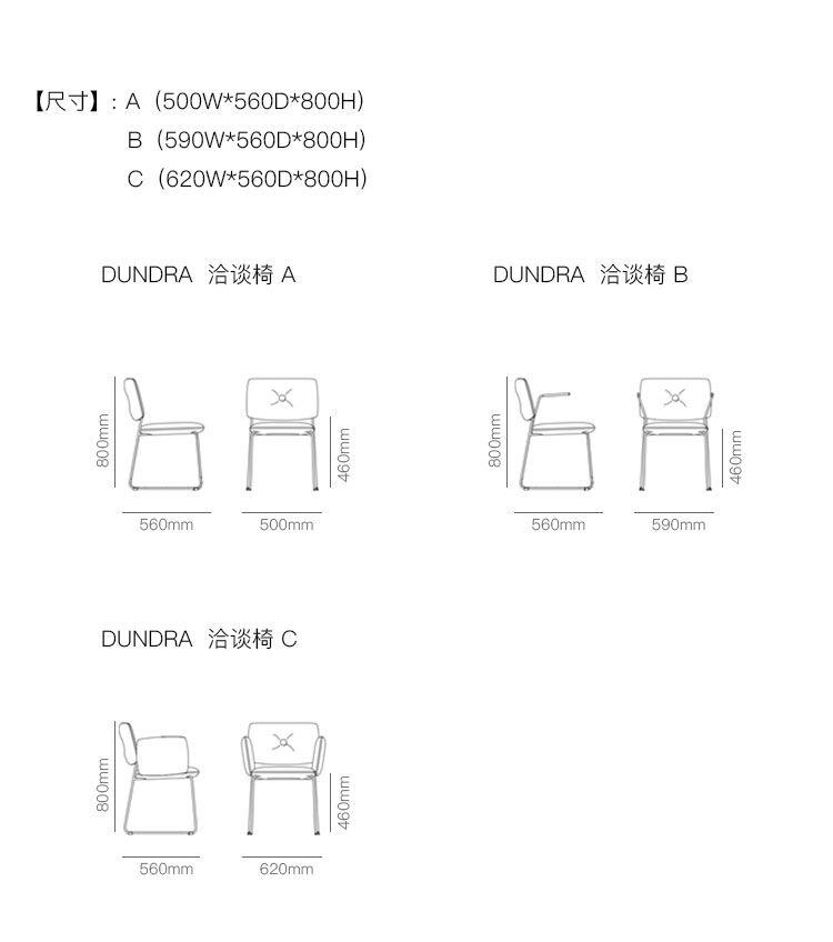 DUNDRA 洽谈椅 系列尺寸/示意图