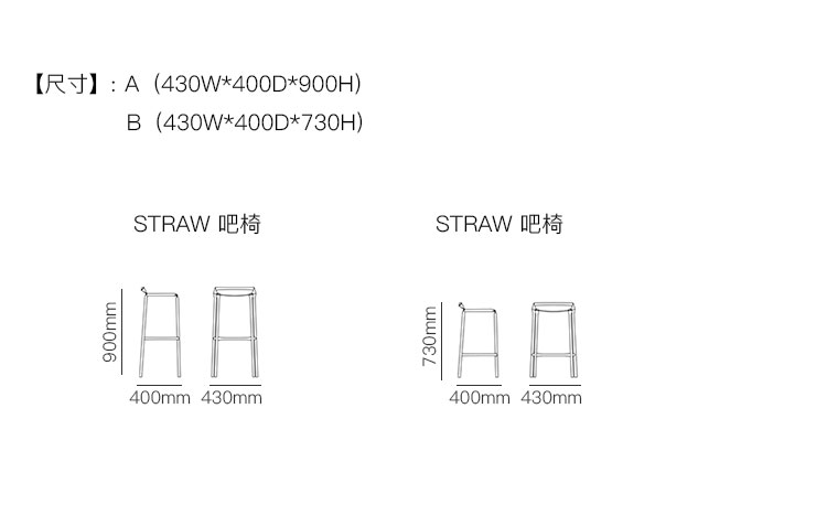 STRAW 吧椅 系列尺寸/示意图