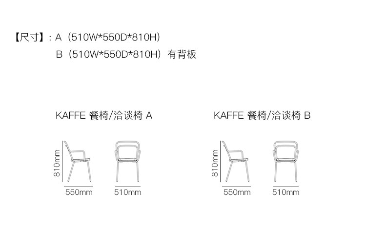 KAFFE 餐椅/洽谈椅 系列尺寸/示意图