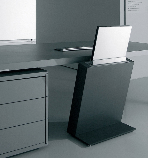 X5显示器模块,专为企业高级经理人办公空间及多媒体会议空间打造,可直接与办公家具相连,不用借助任何工具,通过简便的操作就能将显示器模块与会议桌或办公桌连接。简洁的设计、极致的产品工艺,人性化的操控方式,只需一触按键,显示器便会从槽中滑出。