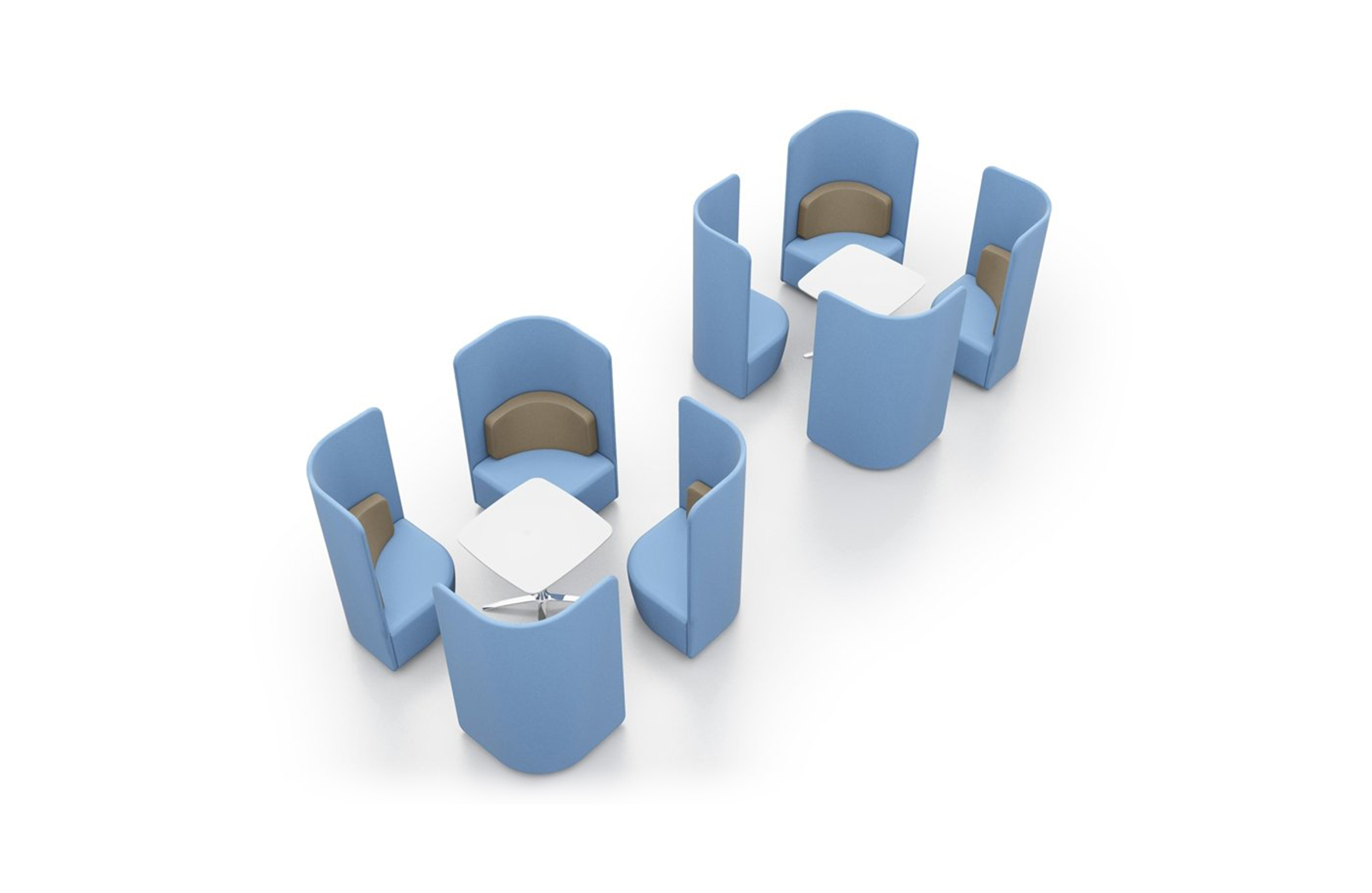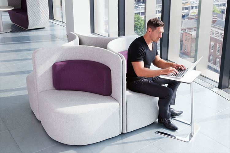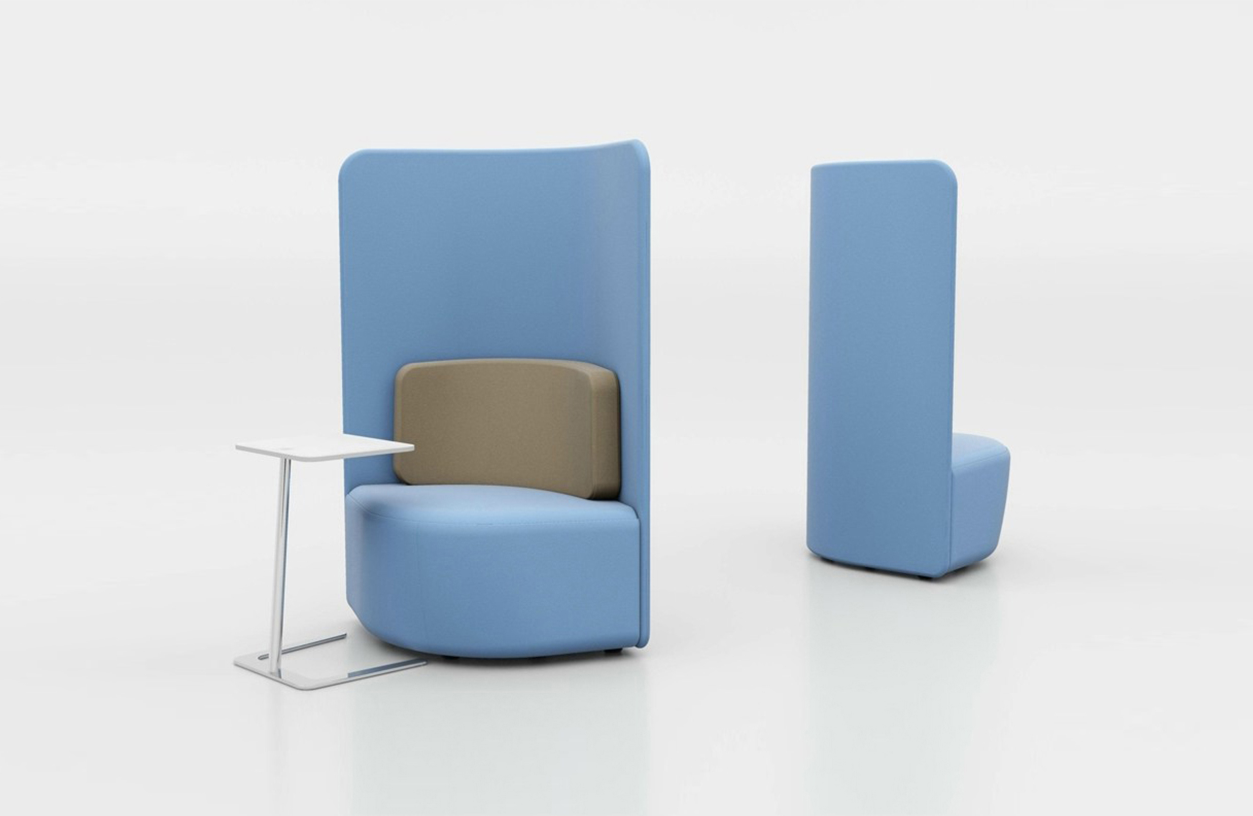 作为一种有高、低背两种款式可供选择的椅子,这种设计可以提高声学特性,并吸收周围背景噪音。