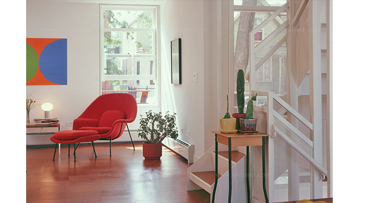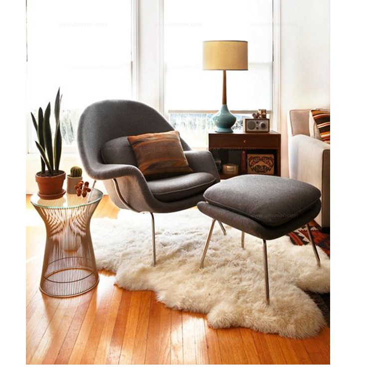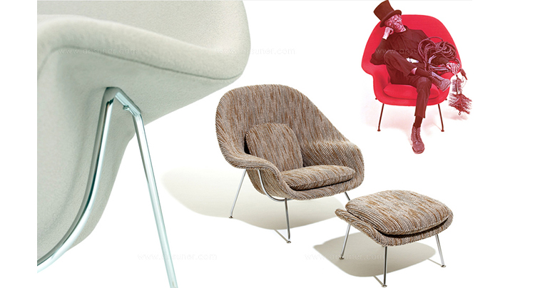 Womb Chair 的基本构造是由抛光镀铬或雾面钢管底座,以一体成型的泡棉包覆框架所组成。 Eero Saarinen 设计这张椅子挑战了一般世俗的规则,打破窠臼,树立了新的现代设计和舒适的标准,充分显示他的高超才华。