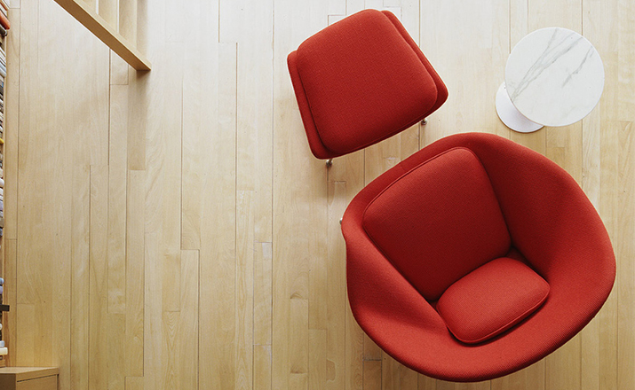 设计师 Eero Saarinen 设计这款 Womb Chair,是为了提供更轻松的坐姿,让身体完全的放松,有一种被拥抱的感觉,故如其名 “Womb Chair"(子宫椅),犹如新生胎儿在母体子宫内般舒适、温暖与安全。