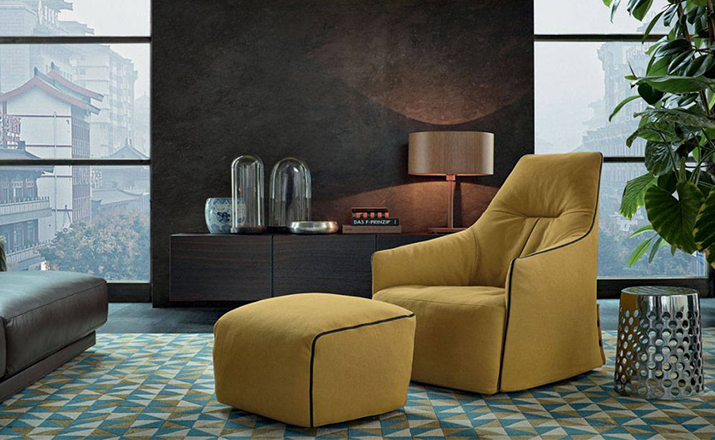 Poliform,Pouf Santa Monica Lounge:A very enveloping and comfortable pouf,which founds its singularity in the seasonal coverings.Its style is casual and chic;casual for its comfort and unformal character and chic for the wide range of coverings recalling Poliform's universe.Santa Monica is a "mix and match"of fabric,cushions and accessories.