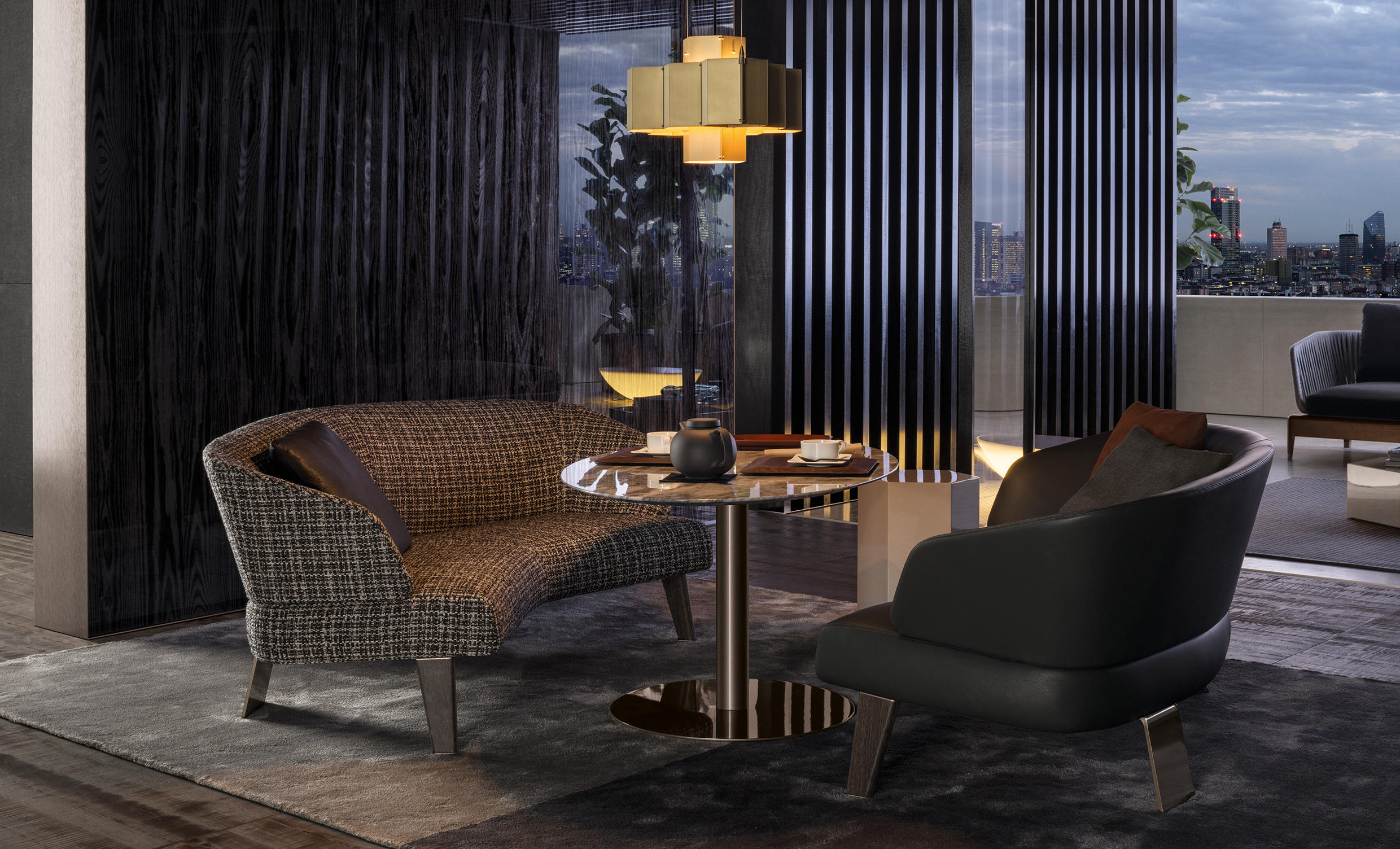 Creed沙发系列极具个性风格,搭配2016系列中的各类产品均能达到相得益彰的效果,尤其是与Bellagio “Lounge”桌搭配,两者的组合可以打造出别具一格的环境氛围。Creed家族成员包括多款沙发椅,每件产品在设计时都考虑到其摆放的精确位置,同时兼顾用途和风格的和谐统一。Creed系列产品的比例设计精益求精,因而不仅可以和谐地融入居住空间,还可以用在接待场所,如等候室、前台区域、行政办公室。饱满而又舒适的造型,精致的表面包覆,一丝不苟的细节,这些就是Creed “Lounge”沙发的特质所在,使其成为居住空间的主角。