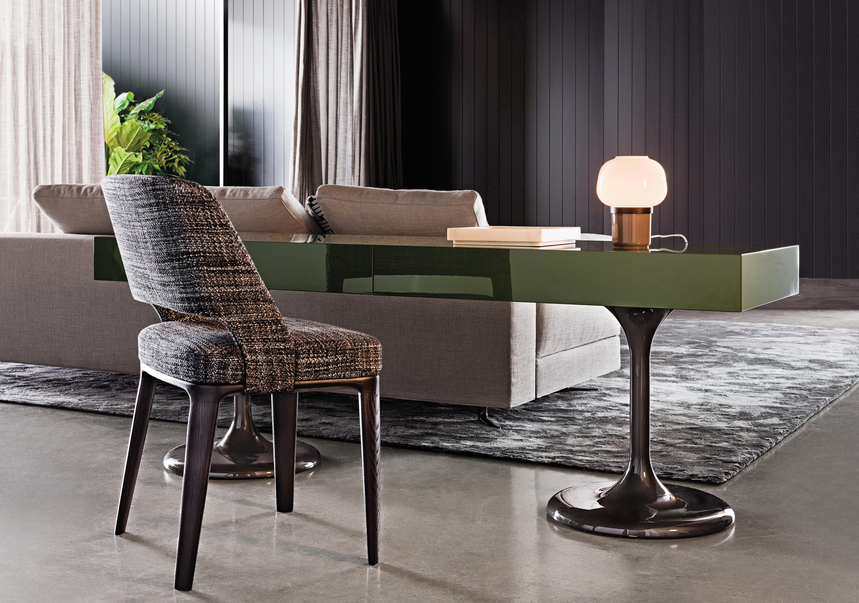 欧文斯座椅与家族中同名的扶手椅一样,将当代设计的精髓与传统的积淀融合在一起,以自身的技术诀窍为基础,体现出展望未来的特质。座椅除了有充满经典风情的Moka色白蜡木版本可供选择以外,还有令人眼花缭乱的设计方案,椅腿可以采用Pewter色漆面的铸铝材质,搭配Minotti Studio独家设计的色调。