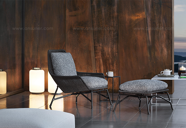 除去了2012年原版的填充物后,王子的“绳索”在室内展示了外壳的骨架,现在它的特点是由皮革覆盖的管状弦交织在一起。 设计灵感来自五十年代的美国现代主义,强调了锡色铝基通过复杂的压铸技术实现。扶手椅的柔软度由织物或皮革装饰的坐垫和靠垫突出。 米诺提产品的优势之一是对细节的剪裁讲究,这一点在圆形轮廓线的执行中得到了突出体现。圆形轮廓线的特点是贯穿整个皮革长度的独特接缝。王子的“绳索”室内有四种颜色——鸽灰色、灰色、烟草和深棕色——扶手椅可以有一个脚凳,上面有相同的风格标志。