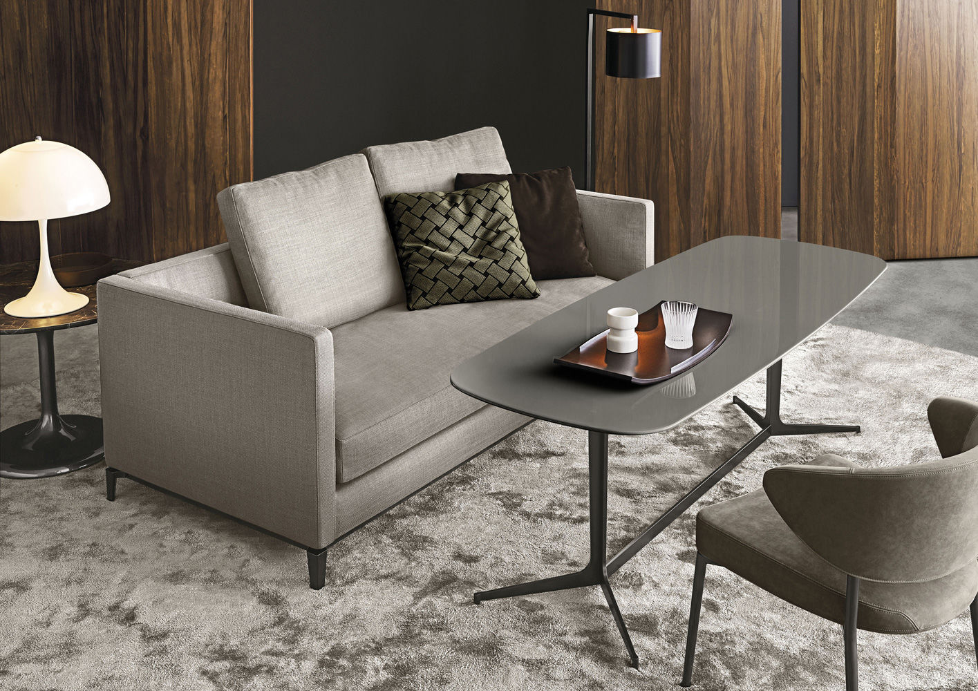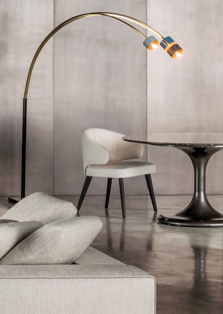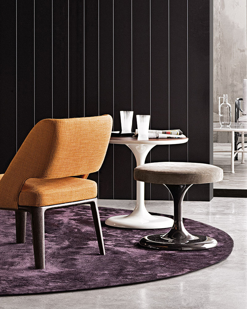 Neto是一组咖啡桌系列,有不同的高度可供选择,此外还有三种直径的台面以及三种不同的材料-颜色组合。如果基座和台面使用相同的颜色亮光漆(白色或Pewter色),以此来展现造型的纯粹感;另外,无论是基座为Pewter色,台面为Marron Damasco大理石的版本;还是基座为白色或Pewter色,台面为亚光漆面的花梨木的版本,两者都强调木材和石材这两种材质的珍贵性。“全白”版本则展现出Neto咖啡桌的可塑性。在亚光漆面的花梨木版本中,台面下方使用与聚氨酯基座相同的颜色,采用Minotti Studio的独家设计。技术与设计内涵在咖啡桌上展露无遗,体现出十足的个性,使其能够搭配系列中的任何沙发座椅。这款极具功能性的休闲凳属于Neto家族,基座材质为聚氨酯,漆面颜色为Pewter色,上方部件则添加填充物,包覆Minotti独家系列中的布料和皮革。Neto休闲凳是搭配LANE边几的理想之选,实际上,它也是一款万能单品,在任何环境中都能自如地展现魅力,与系列中的任何产品搭配都毫无违和感。