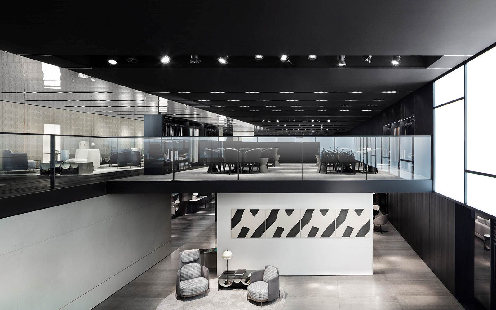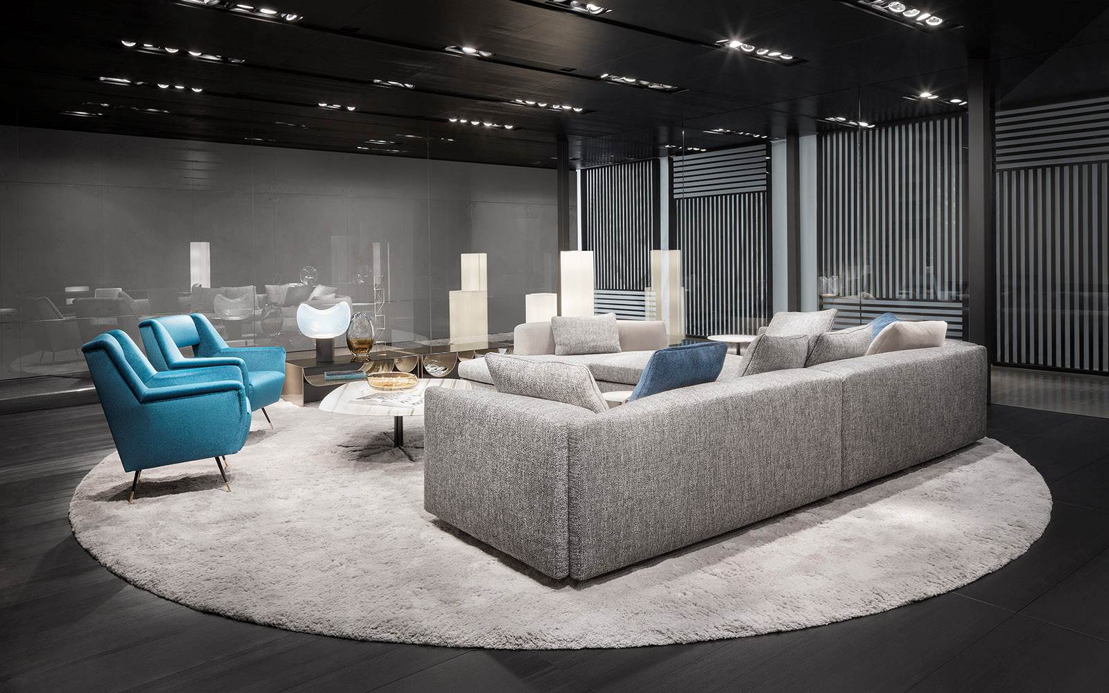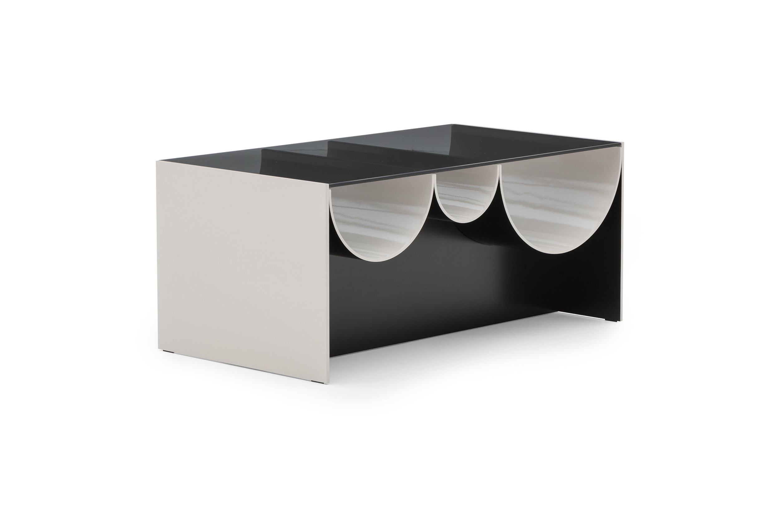 连续的连续的倒置的半圆形使前轮廓蜿蜒而上,适应了空的空间,使使用者能够将杂志、报纸和小物体以平视的方式离开。