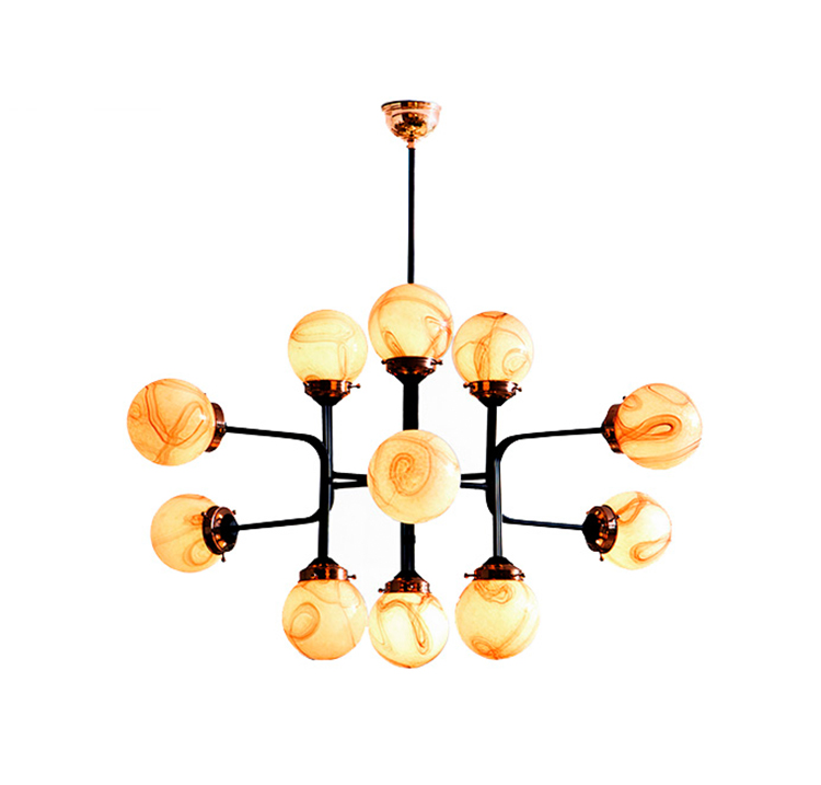 Ziron是一款完全手工制作的枝形吊灯,灵感来自古董手工制作的眼镜,不再生产。 每个手工吹制的玻璃穹顶都是独特的,具有不同的图案,但是以优雅的方式相互协调。 黑色涂漆的金属片弯曲并连接在一起,从而形成枝形吊灯的臂。 结合抛光铜,Ziron是一款现代吊灯,给人一种怀旧的感觉。
