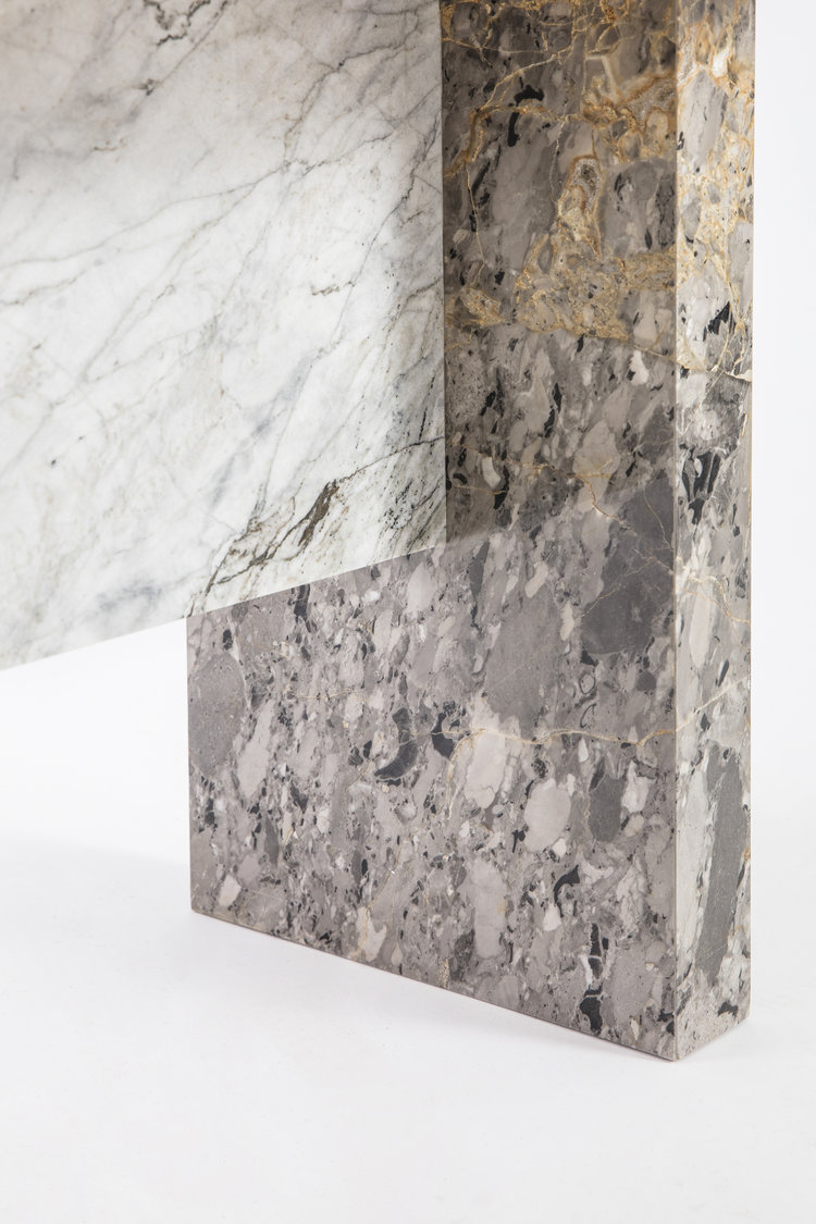 这条长凳的设计理念是:即使固定在固定的地方,也要不断移动。它结合了手工制作的石灰木和对比鲜明的大理石腿。座位是手绘的,让人想起神奈川的巨浪。