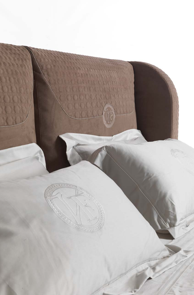 高床头和珍贵的刺绣充实简单的这张床光和现代设计的特征。
