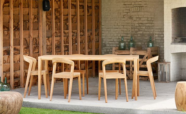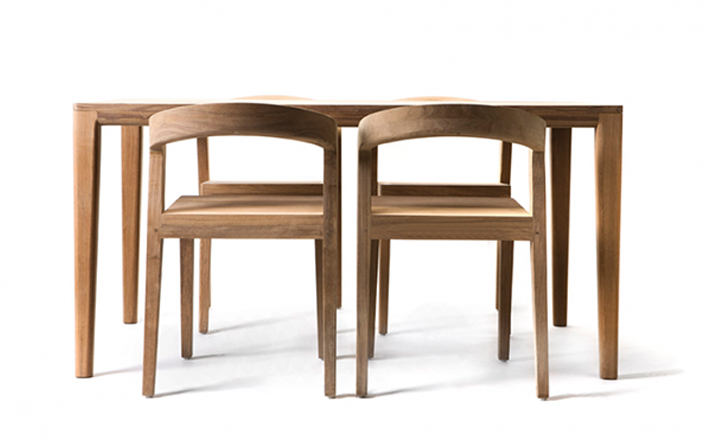 Elegant massive wooden table with an unique contemporary design,rounded edges at the table top and refined table legs.