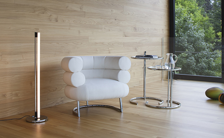 In the 1920s Eileen Gray experimented with various versions of the design of the Adjustable Table E 1027. As she changed the look of the table with a black metal top as an alternative to the crystal glass top, she also selected black as the colour for the frame. The matte black lacquer clearly emphasises the lines of the table and its form – a version she considered especially elegant. Together with Zeev Aram, Eileen Gray developed her Adjustable Table E 1027 for production in the 1970s; they both decided to produce the chrome-plated version first, with the intention to introduce the table frame in black at a later date.