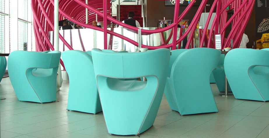 一条连续的曲线线条,一种不会将铅笔从纸上提起的图像形式。 最初是为雕塑提供灵感的'甜甜圈':压扁,并重新制作,使用讽刺超越通常的做法工业设计。然后是在内部玻璃纤维框架上的填充物和缝制对称的室内装饰品,揭示了设计的技术和表现优点之间的相互作用。它永无止境的线条是敏感而强烈的,表面和形式,身体和皮肤之间的完美协调。 织物伸入其周围的空间中,放大并增强了该物件的材质,而不会中断或压倒其流动性。