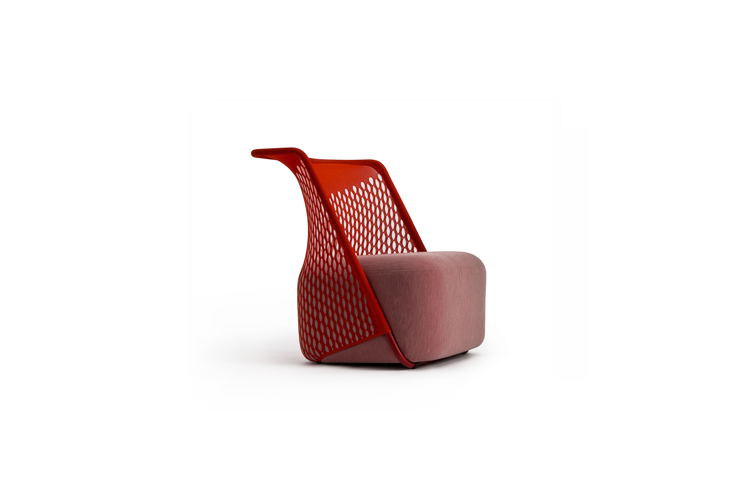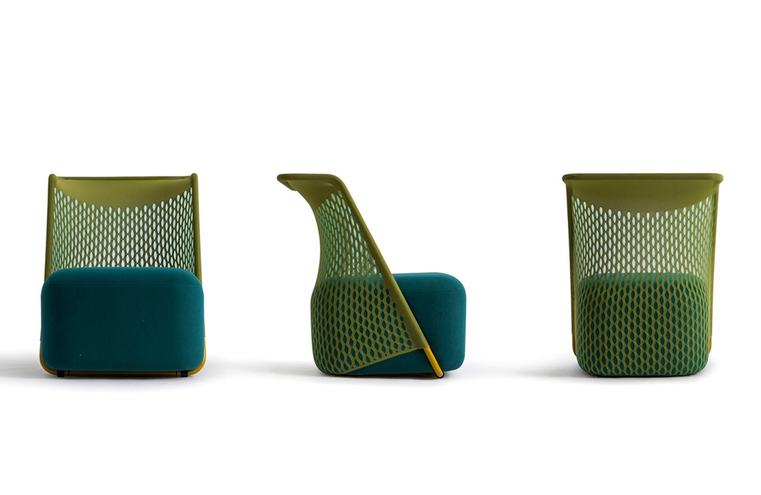 “摇篮”是两种类型座位的独特组合;一个网状结构吊床和一个传统的软垫沙发椅。扶手椅源于工作室的材料驱动、工艺主导、工业设计方法、网格材料的构建研究,以及传统座椅组件之间的关系研究。“摇床”采用了一种定制的剪裁模式,允许非弹性织物以三维的方式进行。这允许正确的张力,舒适地支持身体和视觉上和身体上减少产品的重量。