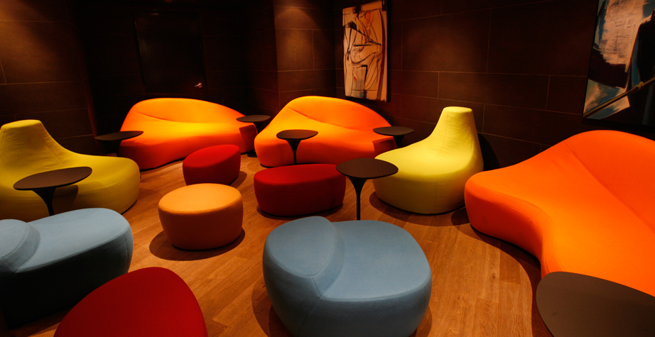 第一个Saruyama,它的地貌形态,一个非常抒情的物体,是由三个模块组成的,它们结合在一起,形成一个巨大的圆形岛屿,不同的一个从另一个中提出对座位的自由诠释。