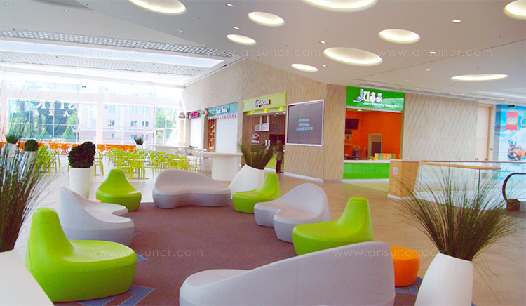 第一个Saruyama,它的地貌形态,一个非常抒情的物体,是由三个模块组成的,它们结合在一起,形成一个巨大的圆形岛屿,不同的一个从另一个中提出对座位的自由诠释。
