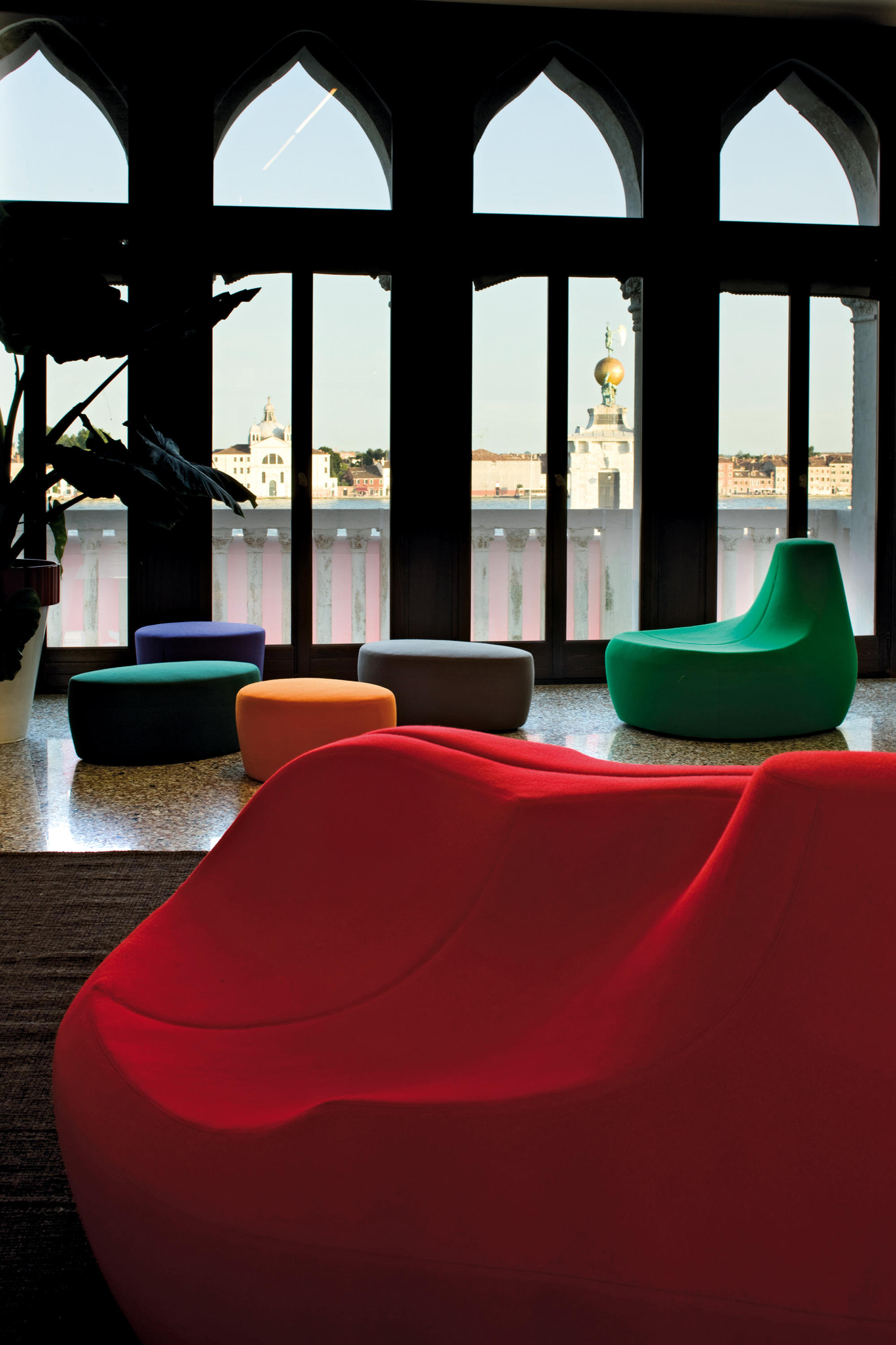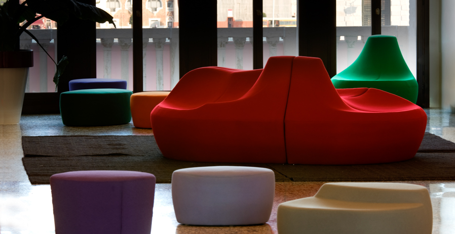 第一个Saruyama,它的地貌形态,一个非常抒情的物体,是由三个模块组成的,它们结合在一起,形成一个巨大的圆形岛屿,不同的一个从另一个中提出对座位的自由诠释。