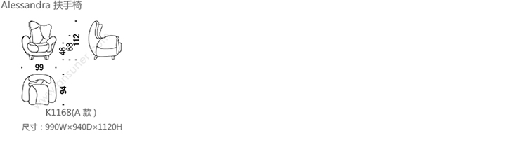 Alessandra 扶手椅 系列尺寸/示意图