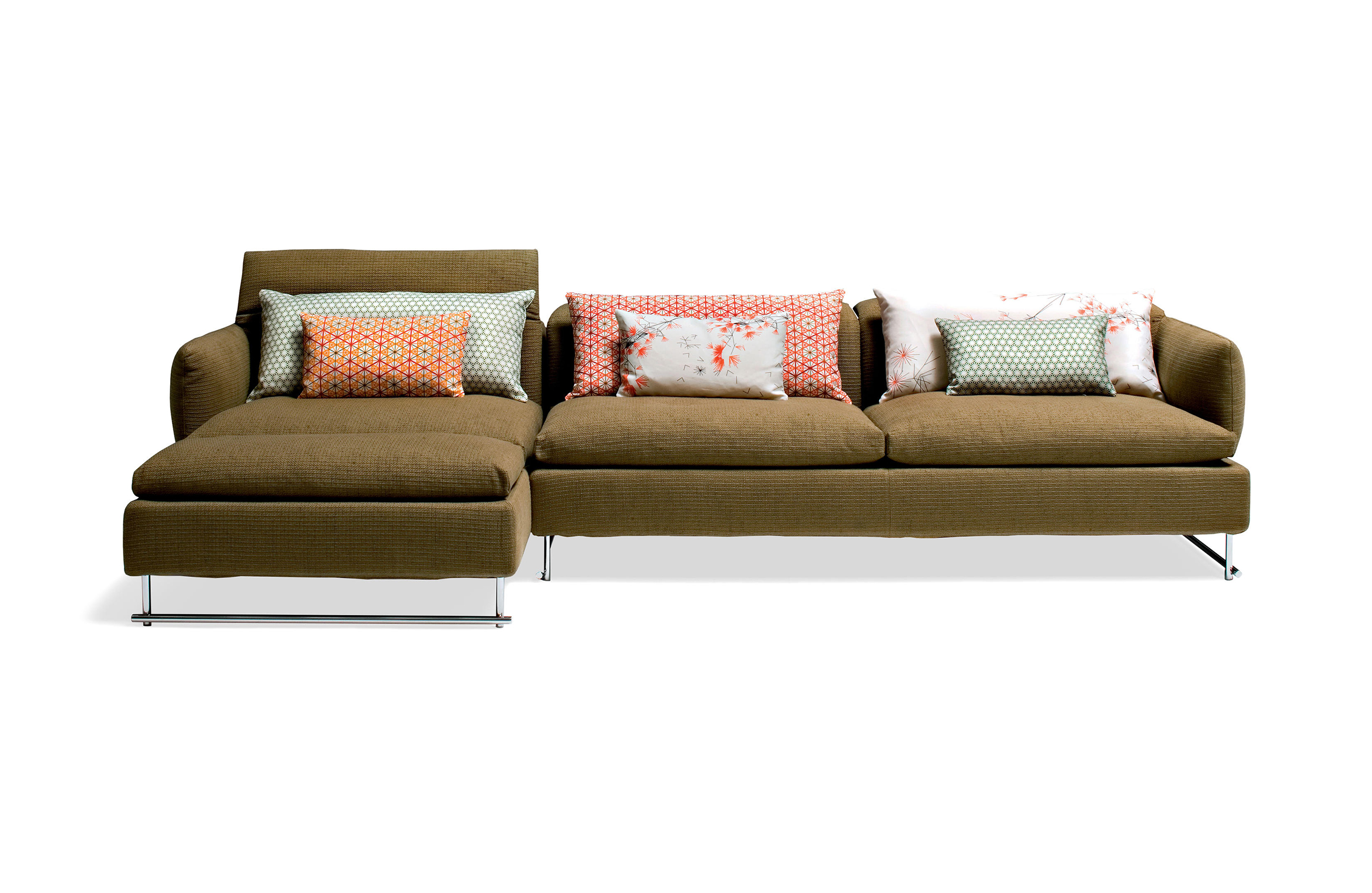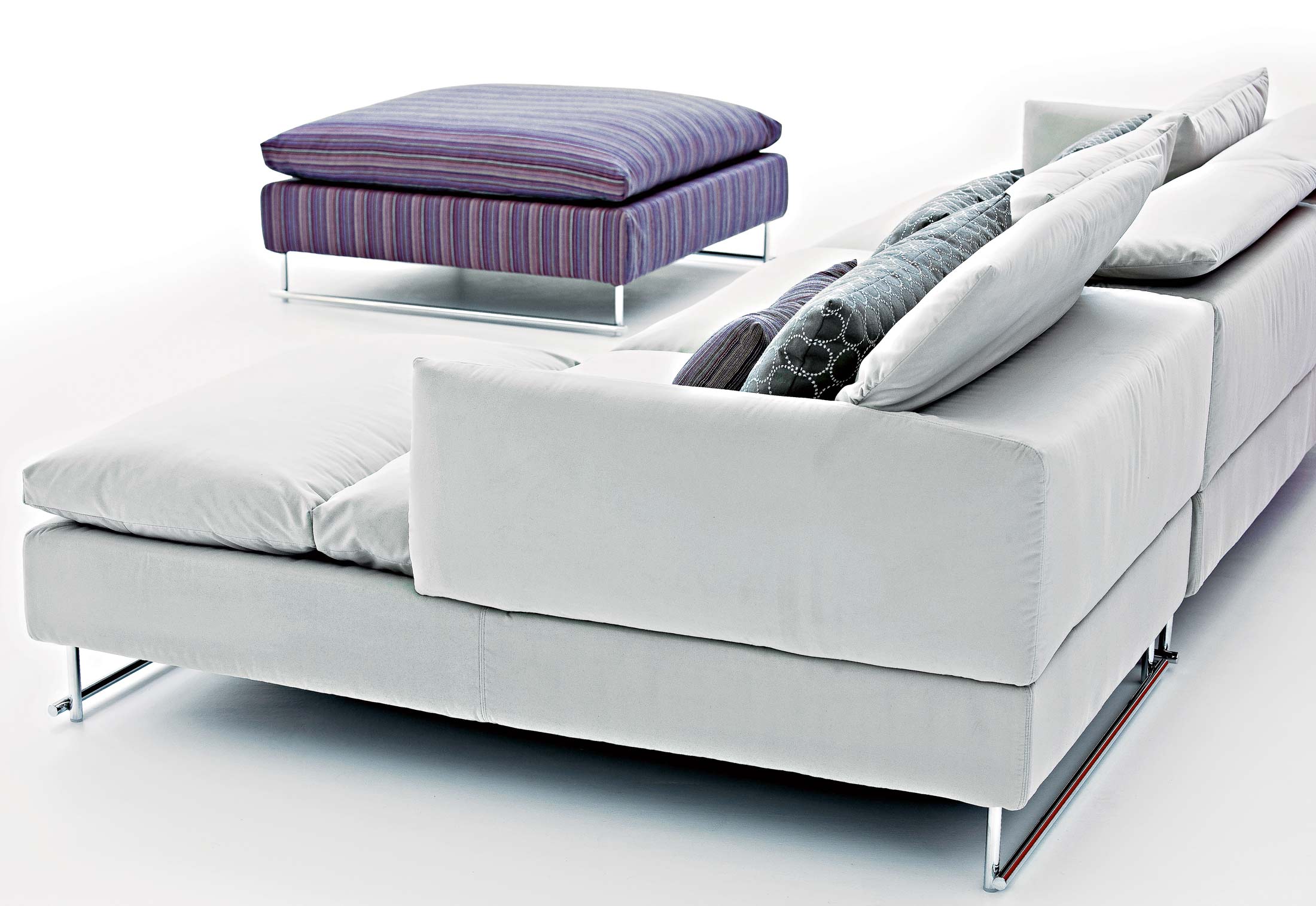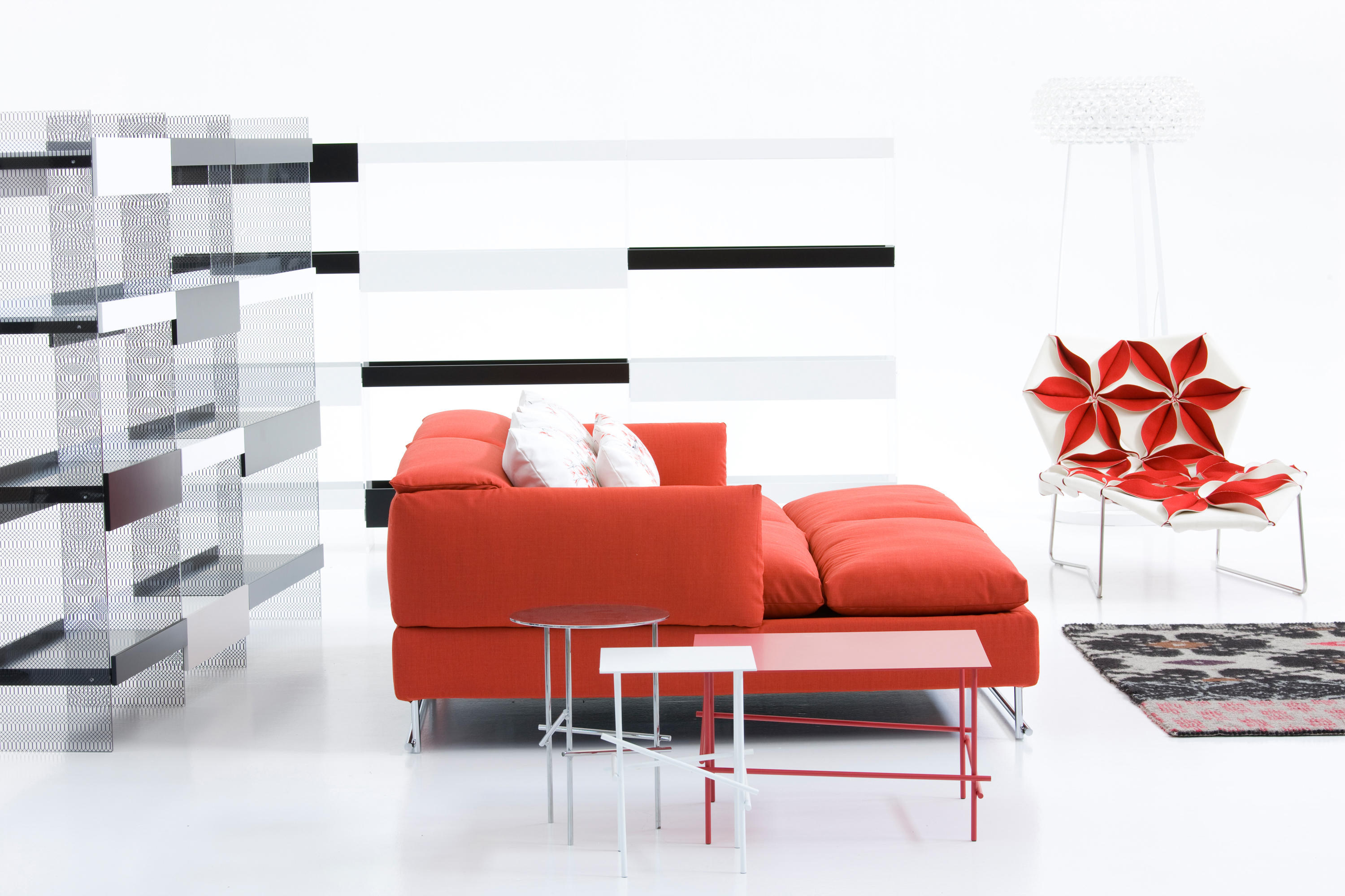 精致而舒适,低调奢华,略带东方风情。在标准位置时简单、最小;当靠背有倾斜的机制时,超级舒适。彩钢或黑色的彩管腿让人联想到用来演奏米卡多(或称“上海”意大利语)的彩色木棒。舒适是一种内在的特性,它是通过在干净的、中性的色调中舒适地垫在座椅靠垫上实现的,这种色调与在梅花、翠绿、红辣椒和漆红色中所提供的洒垫和涂漆的边桌所提供的色彩形成了完美的对比。