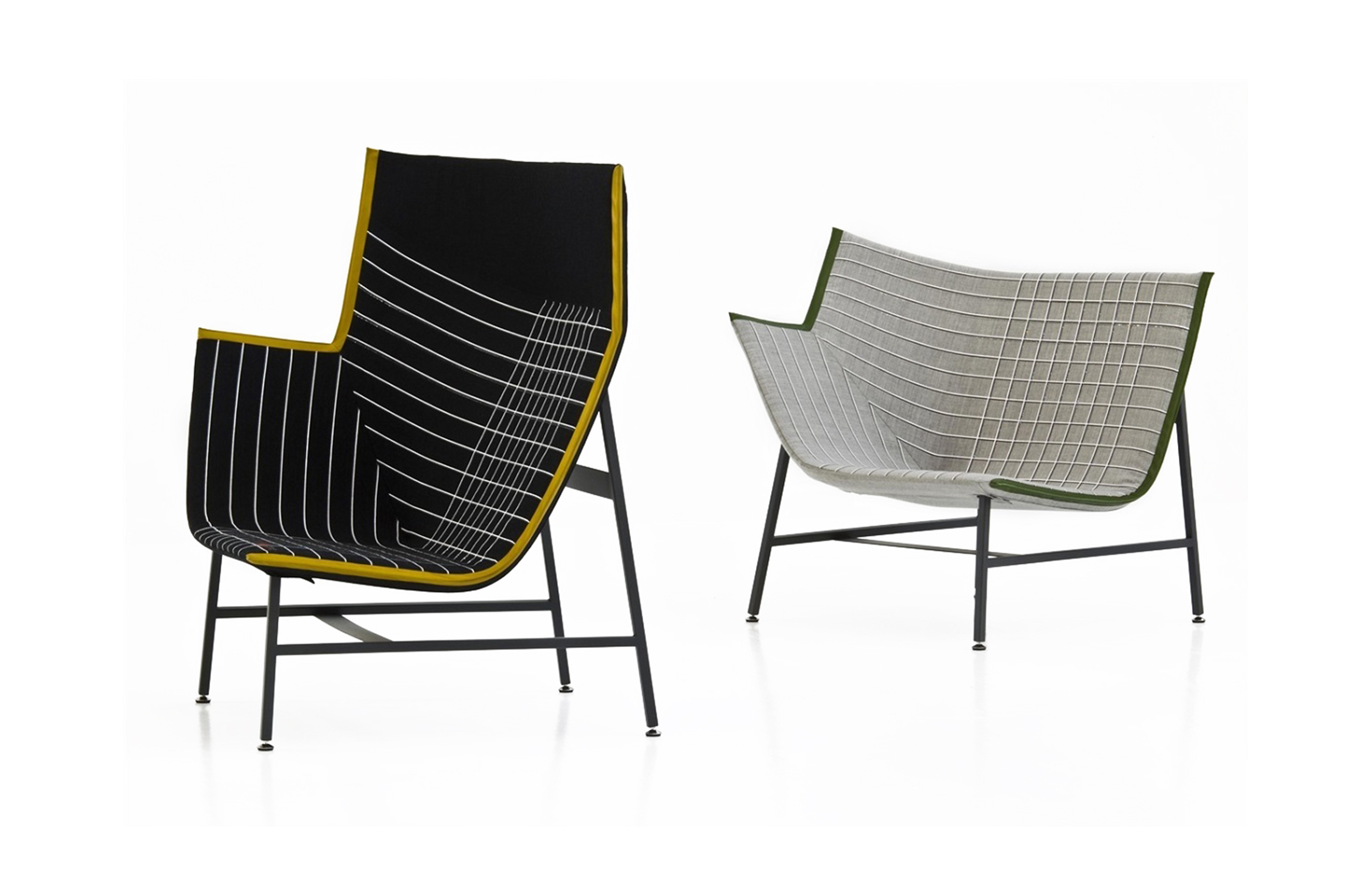 纸飞机起源于一种基于图形纸的织物设计:它的形状来自于纸张的折叠和造型,作为对形式和结构的探索,创造出角度、线条和多边形。它看似简单,却需要高超的裁剪技巧:面料的线条必须与椅子的几何结构完美结合,这意味着没有犯错的余地。