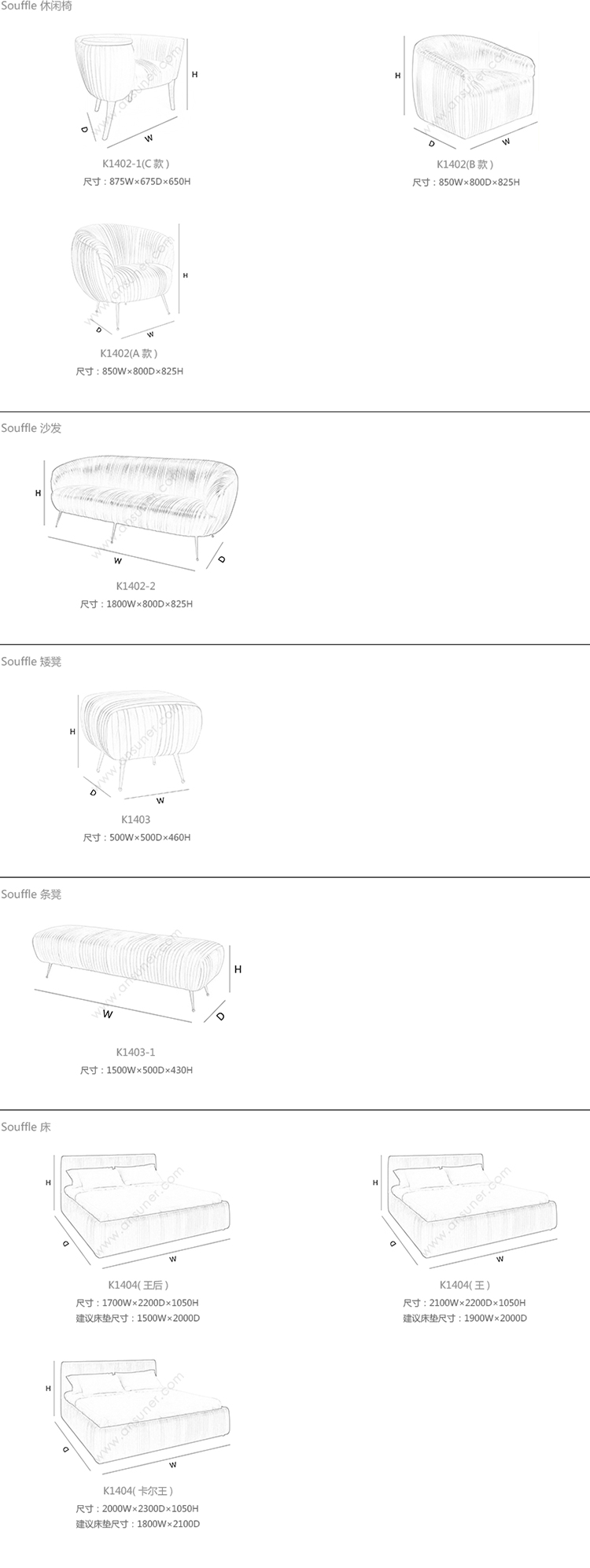 Souffle 休闲椅 系列尺寸/示意图