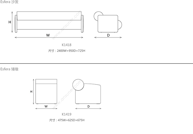 Esfera 沙发 系列尺寸/示意图