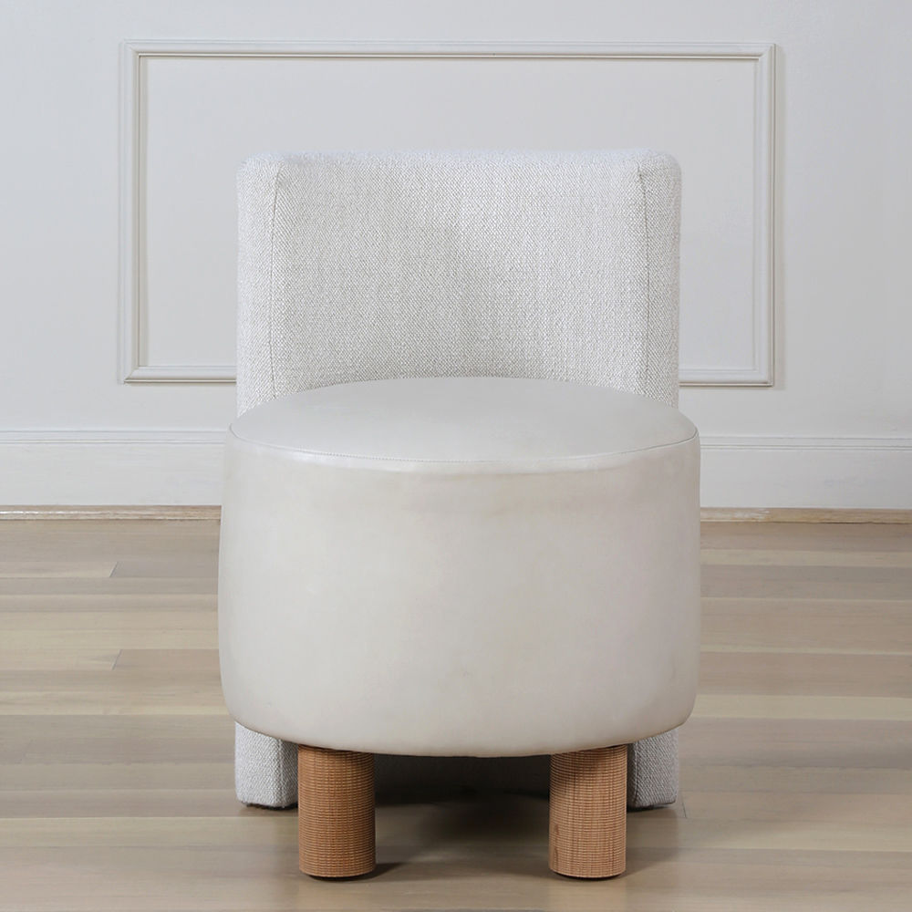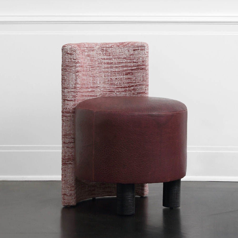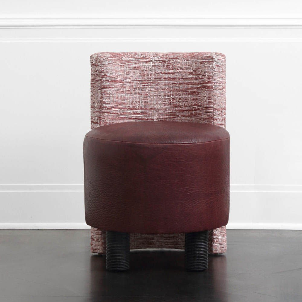 这种低矮的椅子或凳子结合了一些简单的体量和纹理,创造了一个戏剧性的临时座椅。鼓形座椅与垂直的背部相接,形成后肢,椅子的前部位于一对粗壮的圆柱形肋腿上。 这是梳妆台或休闲客厅布置的理想座位选择。 腿部饰面选项包括漂白,天然和黑檀木。 提供精选面料和皮革。