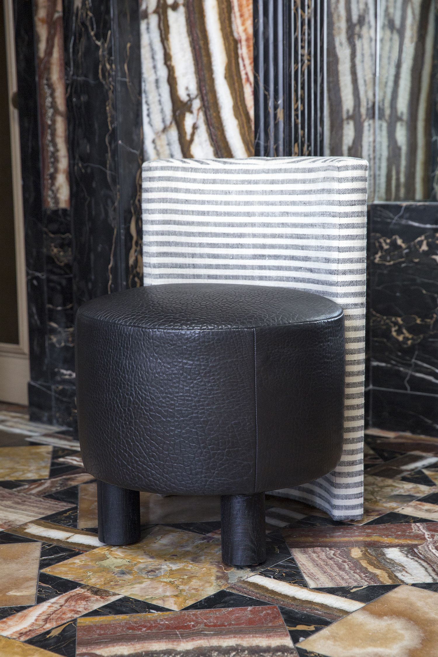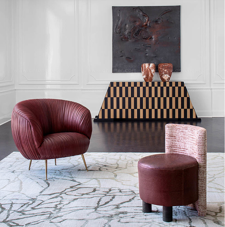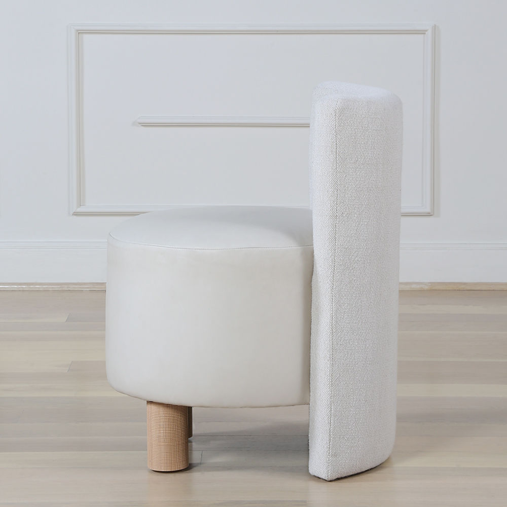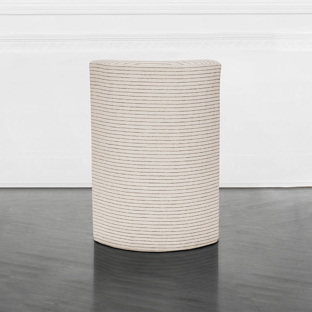 这种低矮的椅子或凳子结合了一些简单的体量和纹理,创造了一个戏剧性的临时座椅。鼓形座椅与垂直的背部相接,形成后肢,椅子的前部位于一对粗壮的圆柱形肋腿上。 这是梳妆台或休闲客厅布置的理想座位选择。 腿部饰面选项包括漂白,天然和黑檀木。 提供精选面料和皮革。