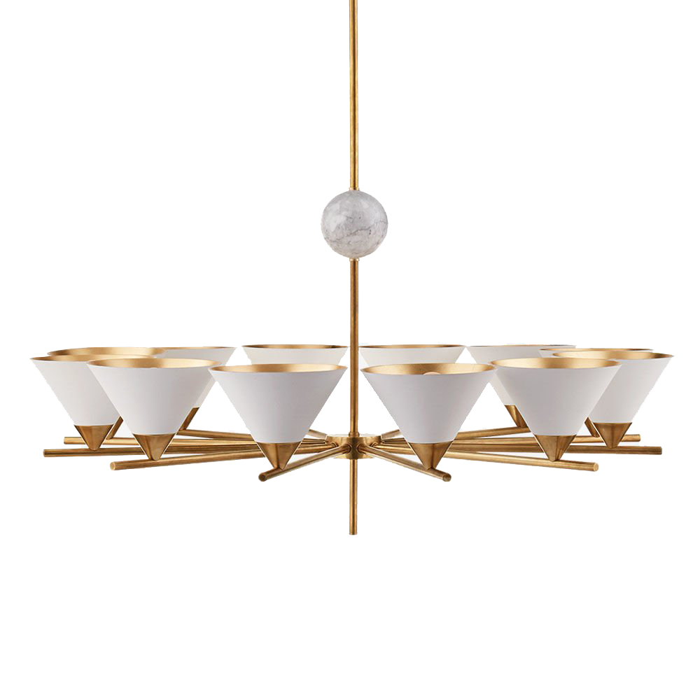 Cleo枝形吊灯以大胆的几何形式突出了混合物质的美感。 这款古董抛光黄铜吊灯采用镀金色罩内饰,可选择白色大理石球形的古色古香色调或黑色大理石球形黑色色调。
