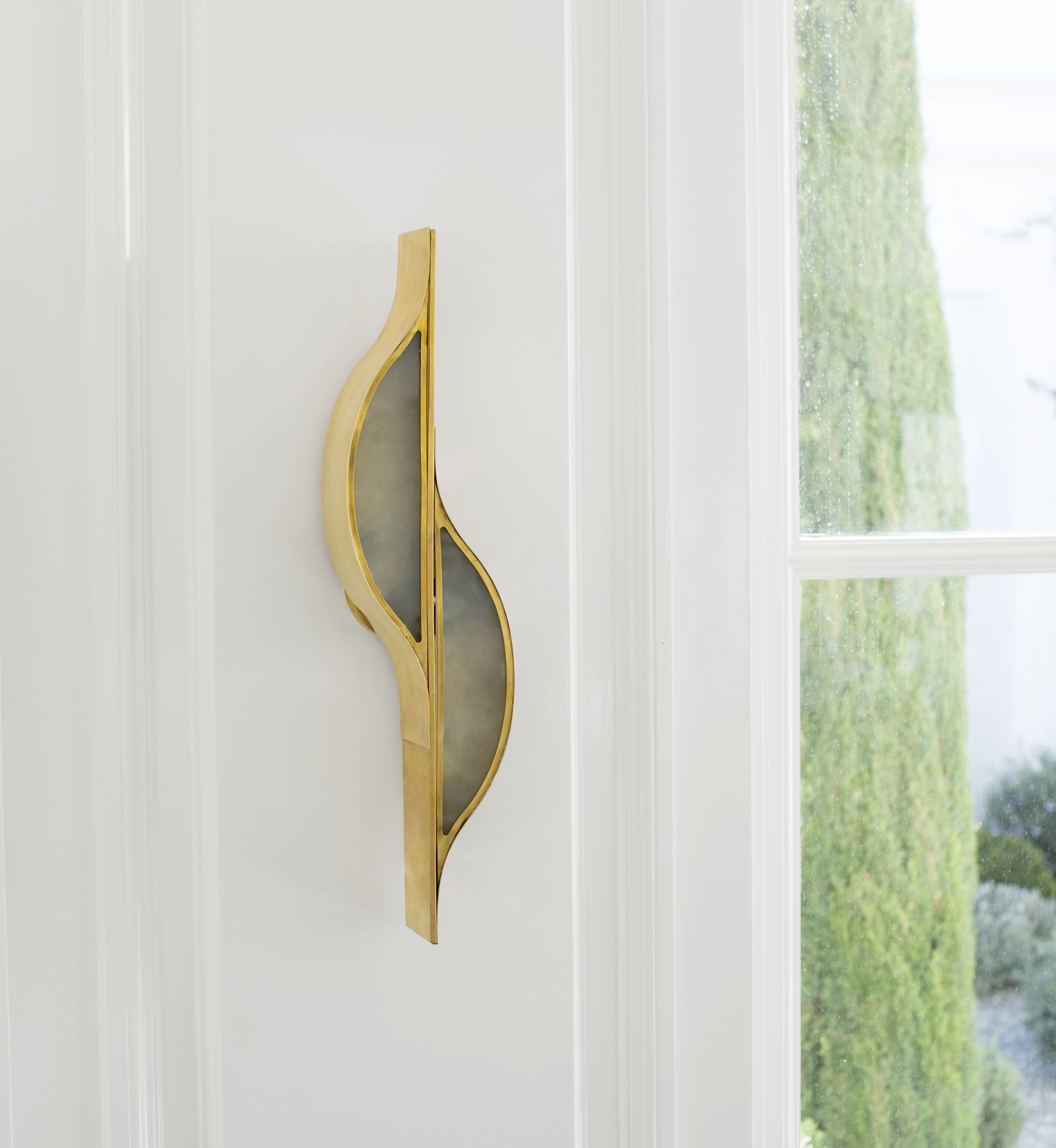 Avant曲线壁灯散发出简约的现代主义,灵感来自线条和曲线之间的纯粹互动。 这款壁灯采用古董黄铜,青铜或抛光镍和磨砂玻璃,适用于潮湿环境。