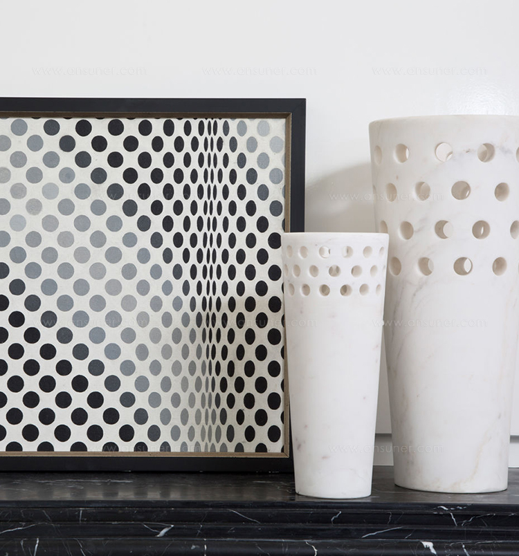 这款优雅且装饰精美的单品采用Kelly标志性穿孔细节设计,重新打造奢华的白色卡拉卡塔大理石,大胆装饰花卉布置或独立时尚。