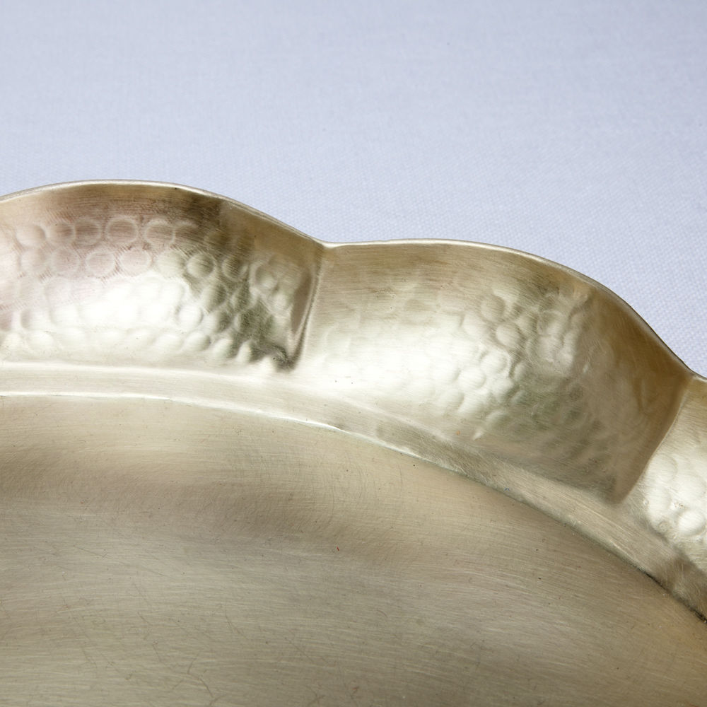 采用天然青铜圆形功能托盘,为Amorata系列制作,带有异想天开的柔软扇形边缘细节。 手工雕刻的这款托盘具有丰富的有机感,非常适合餐桌中心件或工作台面。