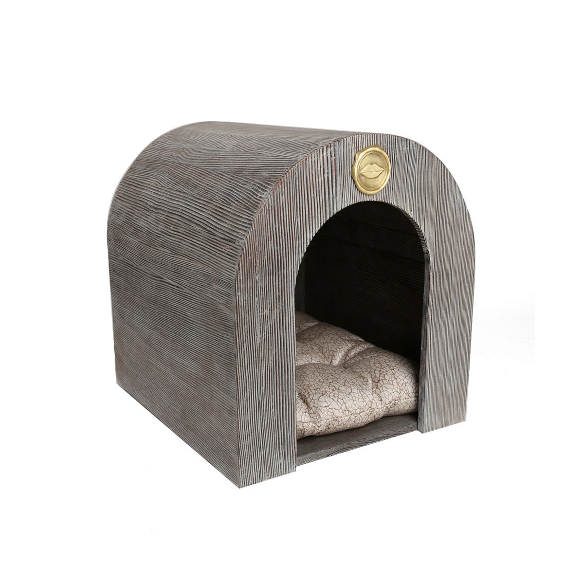 人类最好的朋友应该有一个时髦的住所。 这款精致的狗屋采用凯利的标志性亲吻图案装饰,饰有抛光青铜徽章,为任何家居带来艺术和风格。