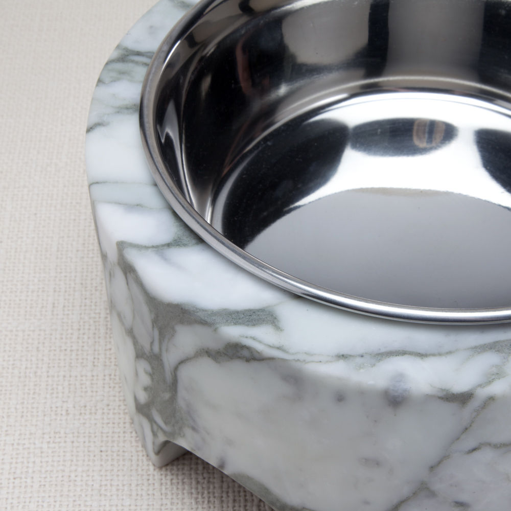 凯利喜欢将日常用品提升为艺术品,这款独特的宠物配件让任何狗屋看起来都很时尚。 由手工雕刻的大理石和不锈钢碗组成,是家庭的一个周到和充满活力的补充。
