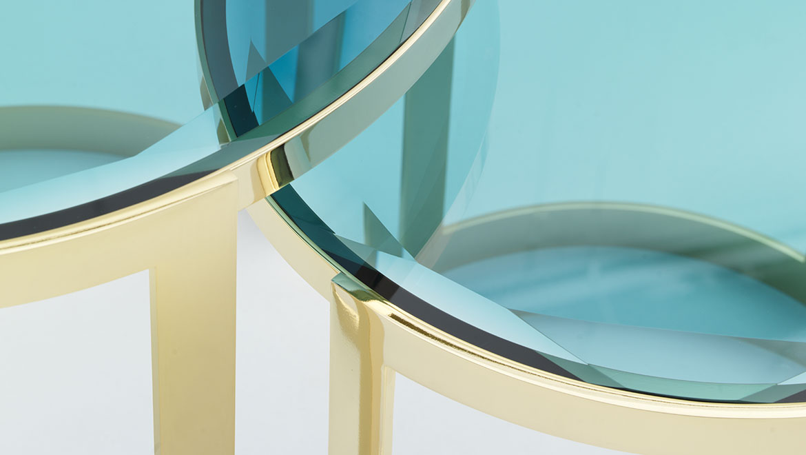 Anya是用橄榄绿或茶色玻璃制成的新顶部的茶几,与黄铜的结构形成对比。一种最小的装饰元素,使顶部的磨削能带来无可挑剔的工艺。