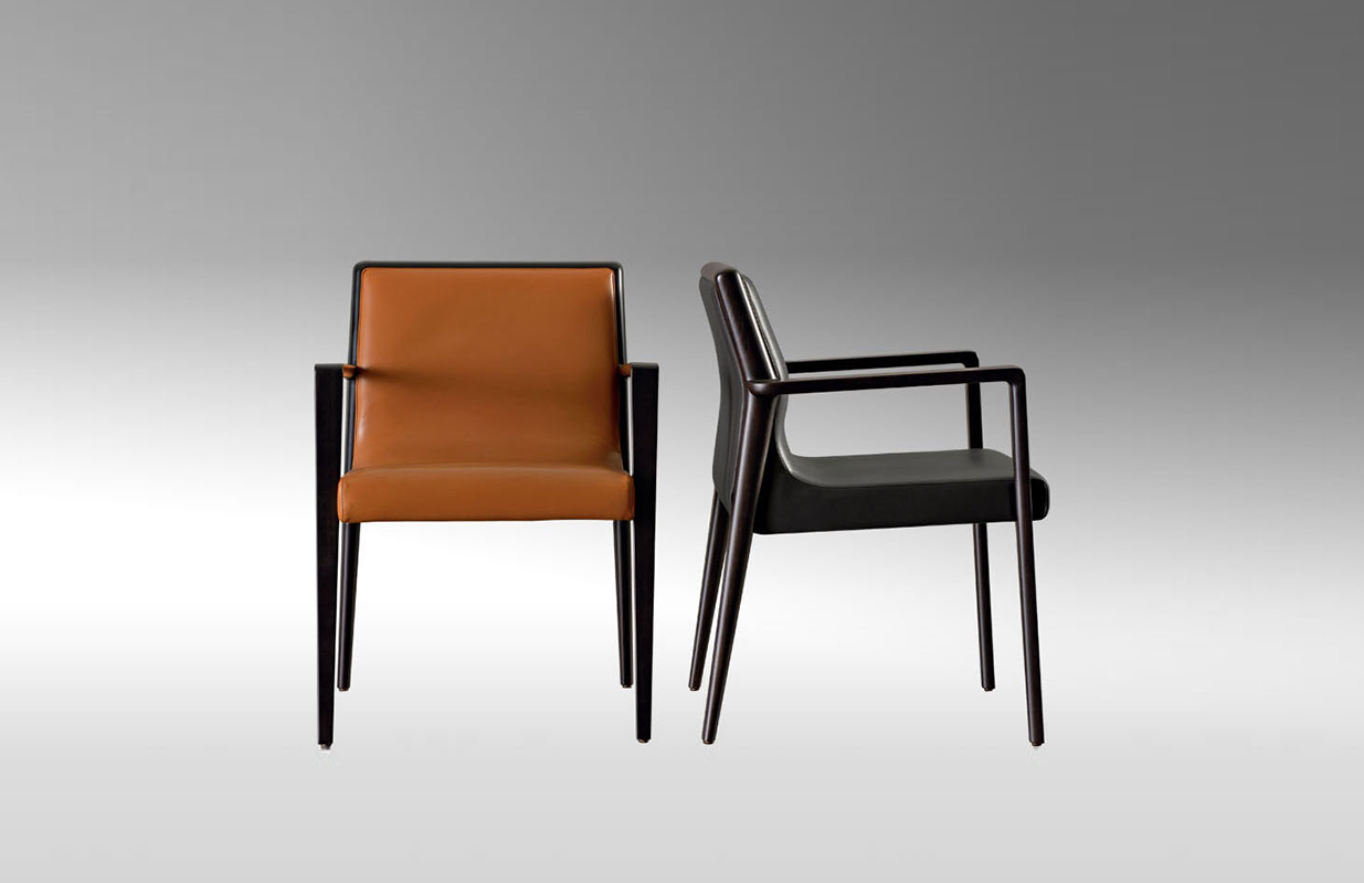 The Nairobi armchair Lounge version has a solid-wood structure stained dark brown and has been reinterpreted in traditional, harmonious and fluid cabinet-maker style without any interruptions in shape.